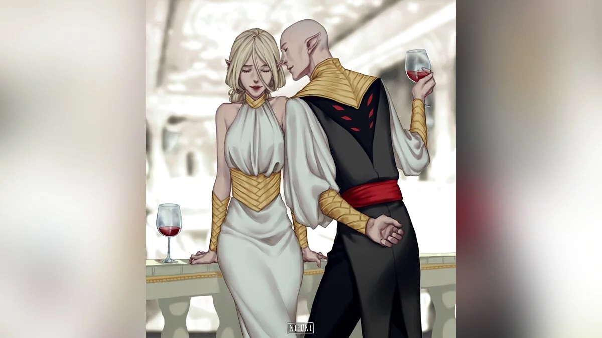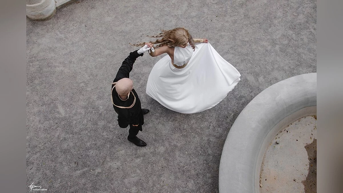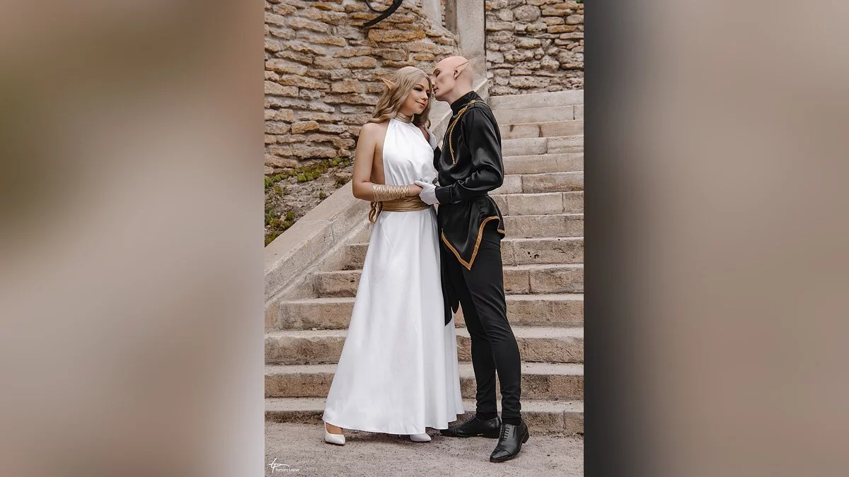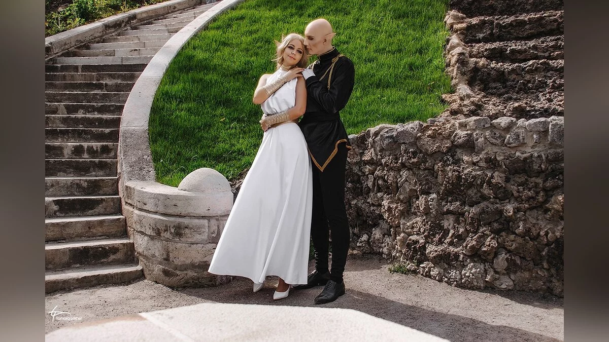 Ася Митина и Александр Александров неоднократно делали косплей на эльфийку-инквизитора и мага Соласа из третьего Dragon Age. На этот раз они обыграли бал в городе Халамширале. Отметим, что их костюмы отличаются от оригинальной игры — за основы нарядов взяты арты от художницы Nipuni.