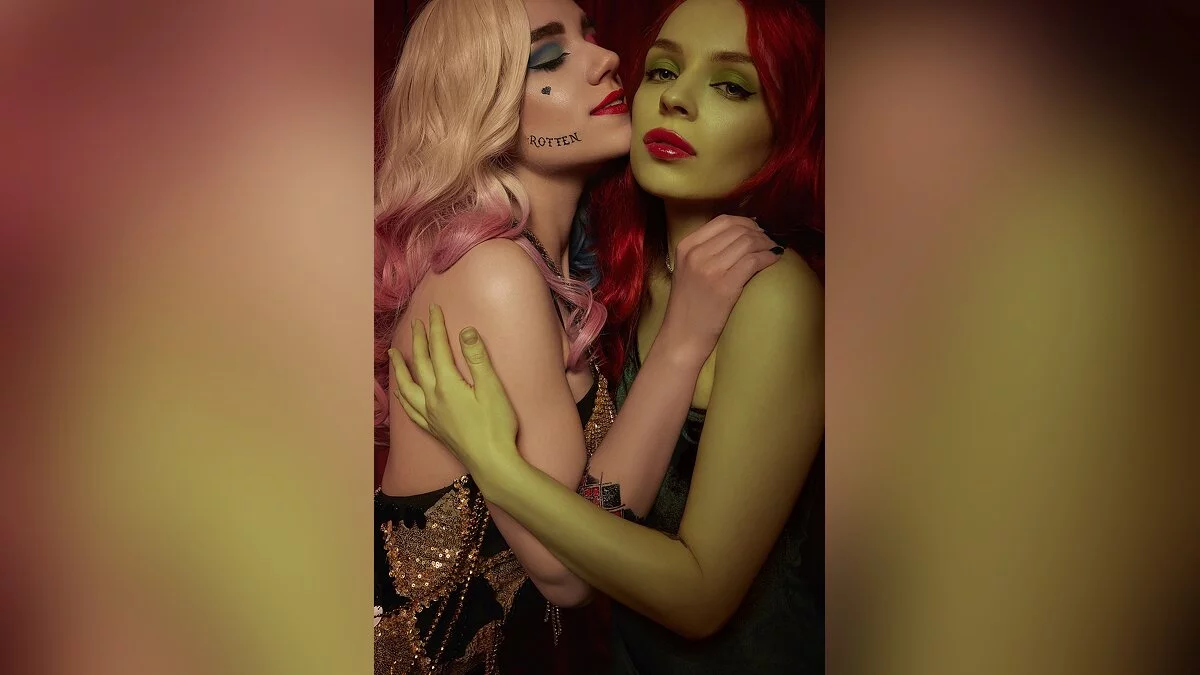 Изначально Харли Квинн дебютировала в мультсериале Batman: The Animated Series как фем-версия Джокера и его верная подружка. Но недавно их пути разошлись — в комиксах и мультсериалах показано, что они нашли других партнёров по преступному бизнесу и не только. Харли после недолгих раздумий решила сойтись с Ядовитым Плющом, повелительницей растений и феромонов. Косплей на эту сладкую парочку сделали Маша Готье и Августа Миклашевская.