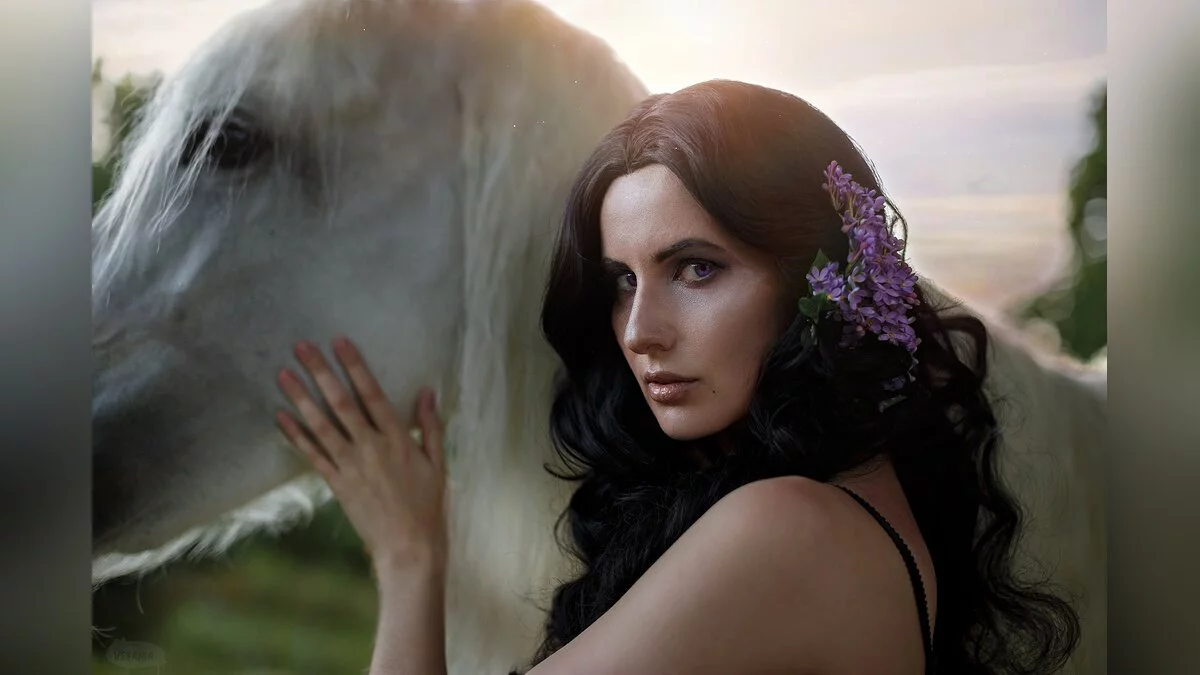 Saint Hysteria часто возвращалась к образу Йеннифэр. На днях девушка опубликовала фотосет, где мы можем видеть черноволосую чародейку с живым конём, который изображает единорога. Те, кто знакомы со вселенной «Ведьмака», знают о странной любви Йен к этим животным…