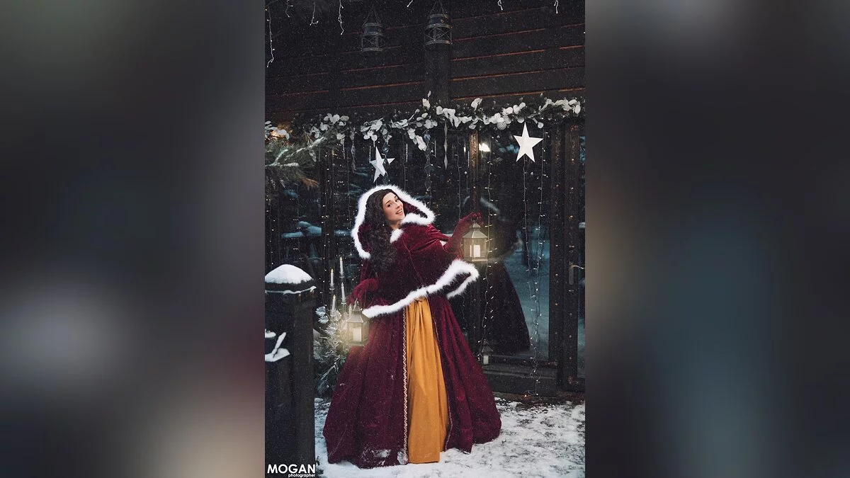Мы уже делали косплей на Красавицу и Чудовище по первому мультфильму. Там Белль была в золотом наряде. Теперь мне захотелось показать её в бордовом платье из второго мультика. Тем более, зимнее настроение к этому располагает.