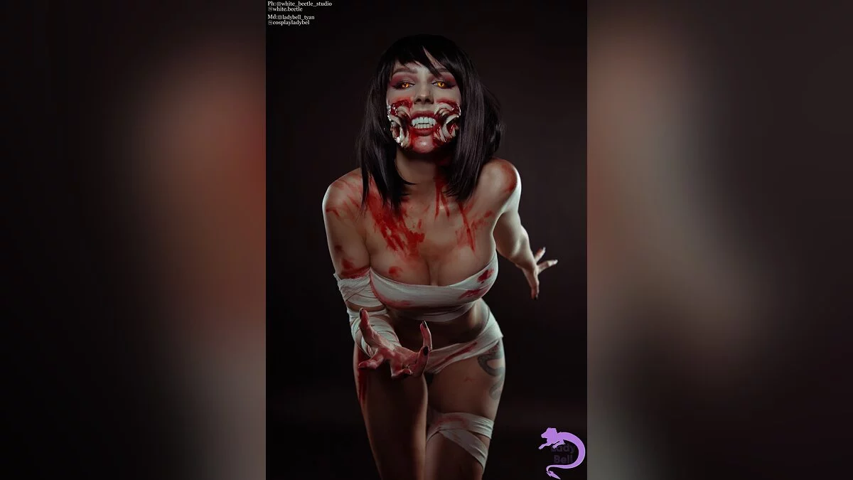 Обычно в косплее мы видим Милину в каноничном фиолетовом костюме. Однако Ольга Кожевникова обратила внимание на другой наряд творения Шан Цунга. Когда в сюжетной кампании Mortal Kombat (2011) принцесса Эдении впервые встретила Милину в Ямах Плоти, из одежды на ней были одни лишь бинты. Этот образ и стал основой для данного косплея.