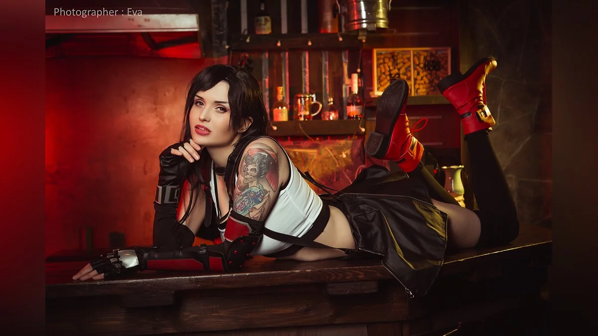 После выхода ремейка седьмой части серии Final Fantasy девушки обратили внимание на Тифу Локхарт, подругу главного героя Клауда Страйфа. Фотосеты в образе волшебницы Айрис Гейнсборо встречаются намного реже. Отметим, что Neo Geisha не ограничилась каноничным косплеем на Тифу, а раздела её до нижнего белья. Другие работы этой красотки вы сможете найти в нашей статье.