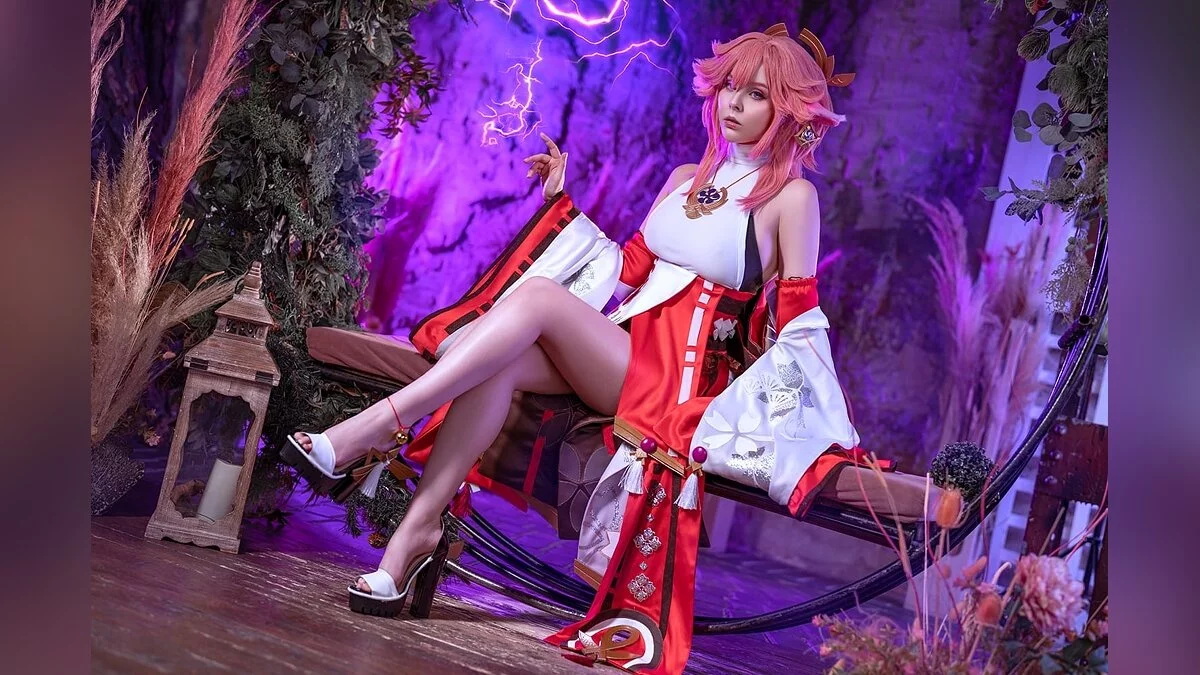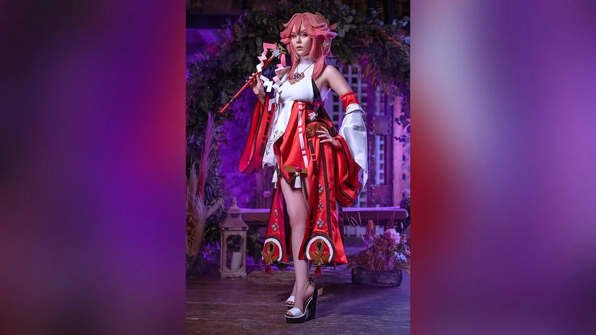 Яэ Мико — Верховная жрица Великого храма Наруками и главный редактор издательского дома, который выпускает новеллы. Если вам удастся заполучить её в команду, то вы получите сильного электро-персонажа. Косплей на Яэ Мико сделала Helly Valentine.