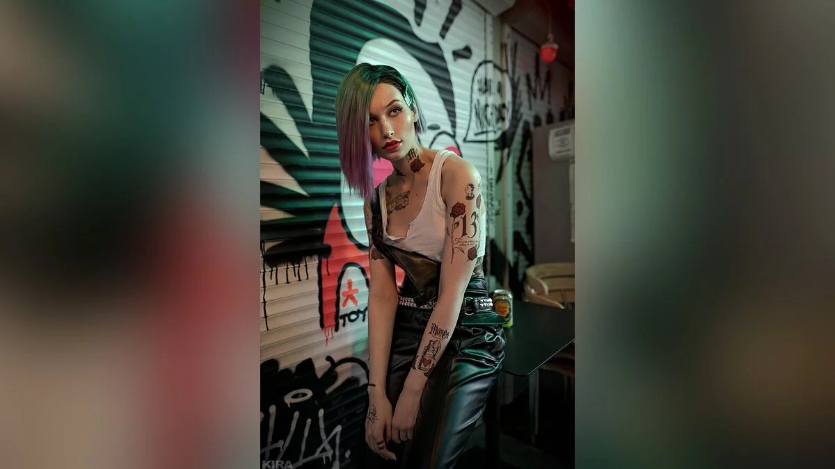 В самой игре у Джуди только два костюма. Анастасия решила, что этого мало и показала свою героиню в красивом боди. Назвать такой косплей каноном нельзя, однако образ укладывается в наши представления о мисс Альварес и мире Cyberpunk 2077 в целом.