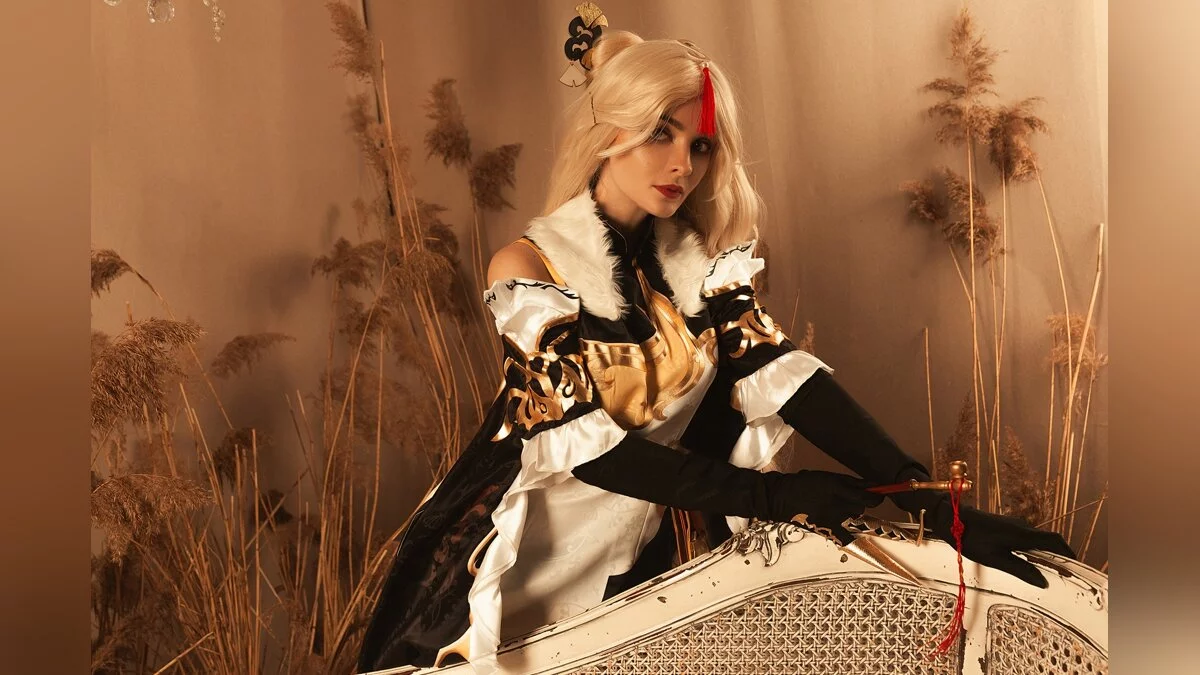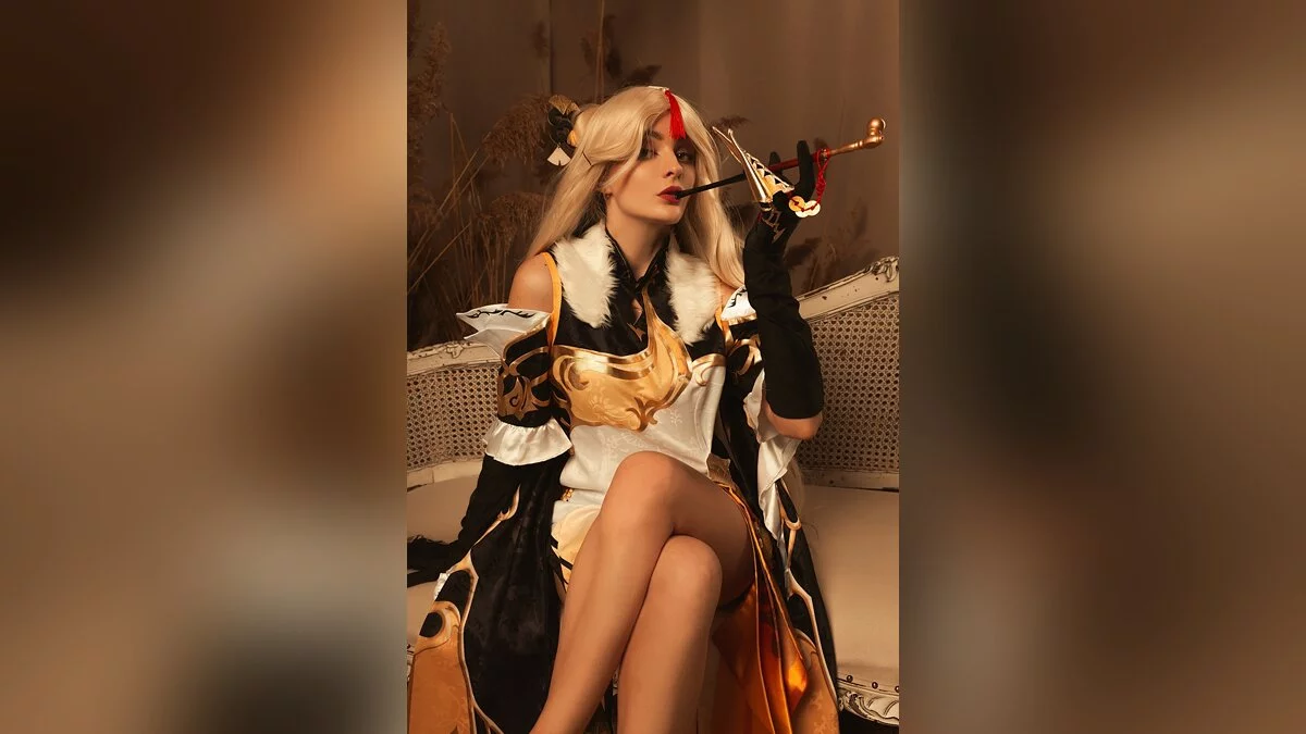 Нин Гуан — самая богатая и влиятельная женщина Ли Юэ. Благодаря тысячам шпионов она знает всё обо всех, что позволяет ей принимать грамотные и взвешенные решения на самом высоком уровне. В бою она выступает как первоклассный Гео-персонаж, эффективный как в обороне, так и в защите. Косплей на неё сделала София Летяго. На нашем сайте есть отдельная статья про эту девушку.