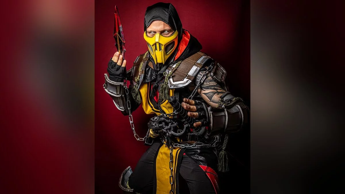 Get Over Here — парень перевоплотился в образ Скорпиона из Mortal Kombat 11 и показал себя с его знаменитым оружием