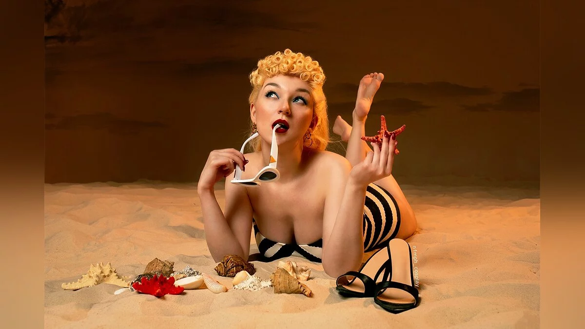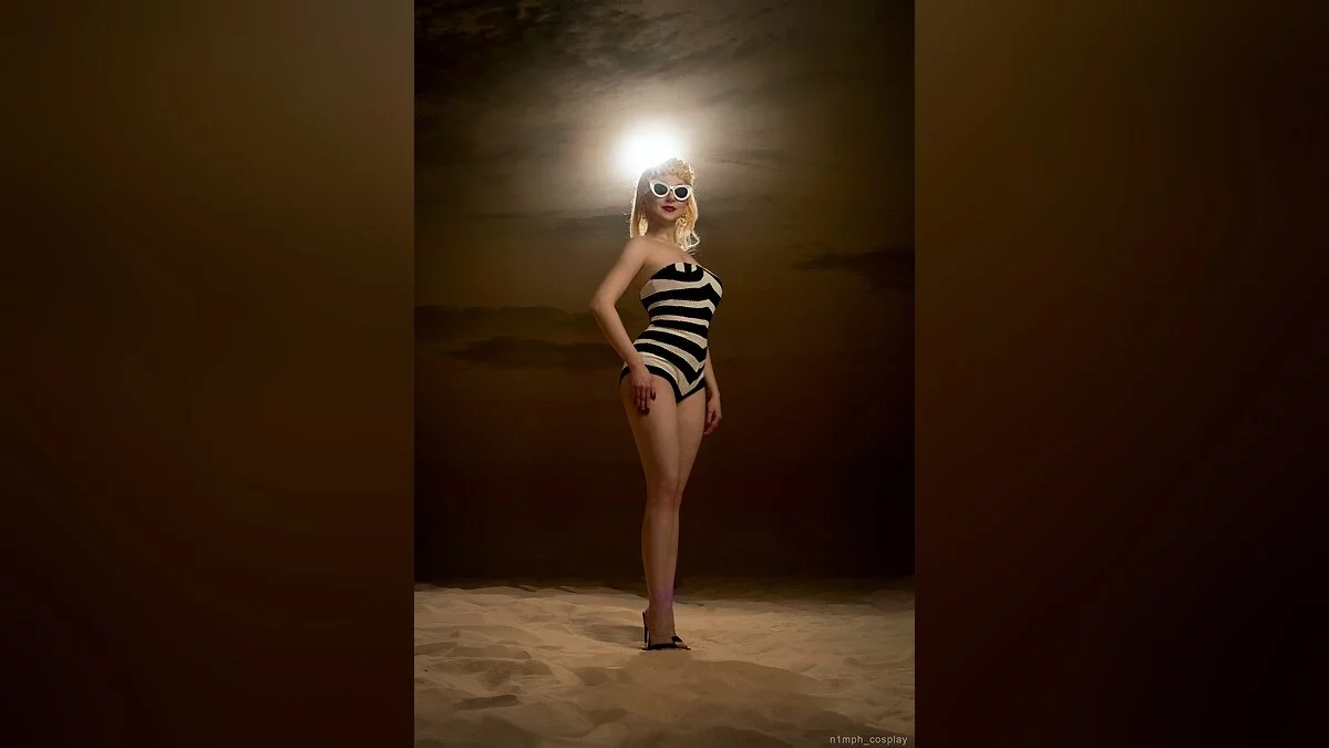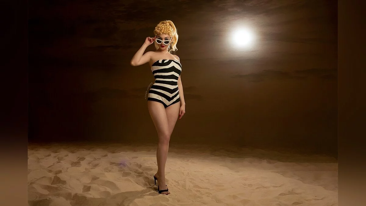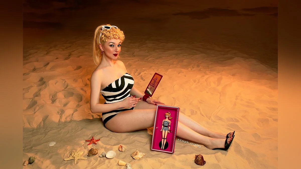 Наталья Ишкаева, больше известная как N1mph, сделала косплей на куклу Барби в полосатом купальнике. А чтобы ни у кого не было сомнений в каноничности образа, девушка сфотографировалась с оригинальной куклой в похожем наряде.