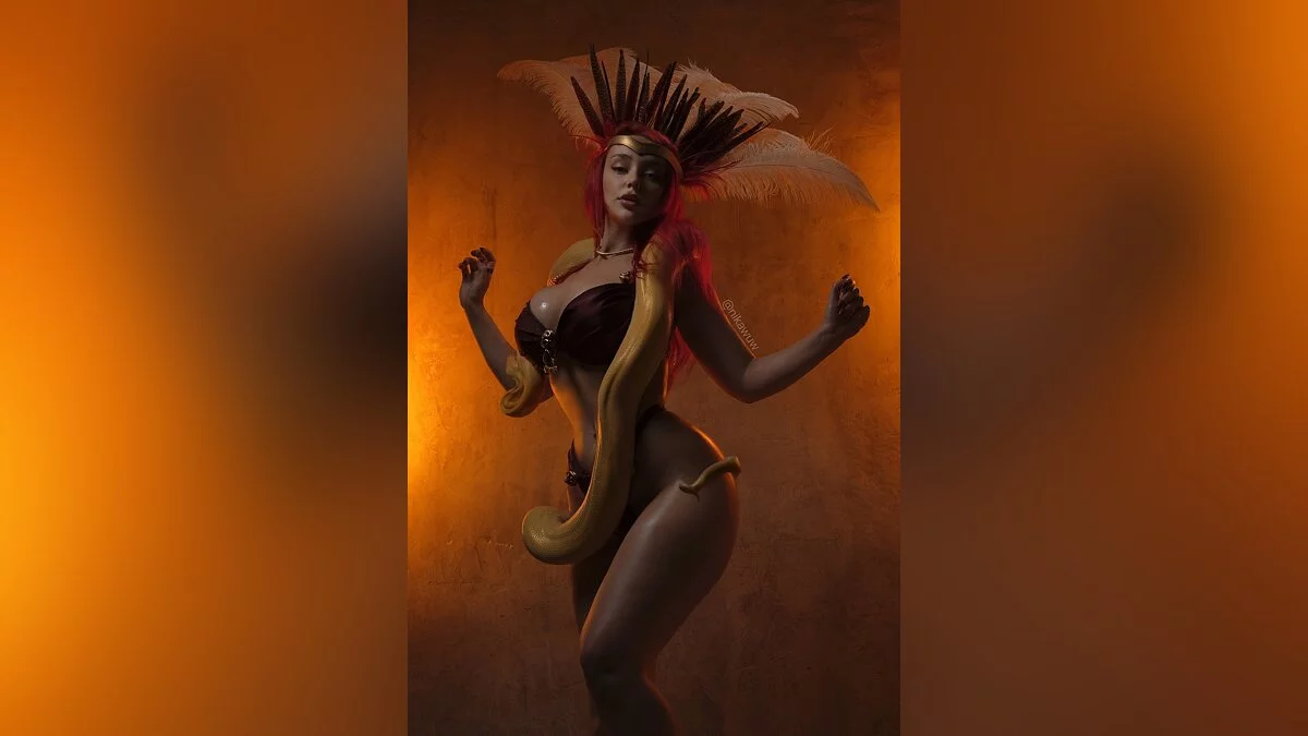 «От заката до рассвета» (From Dusk Till Dawn) — фильм Роберта Родригеса (Robert Rodriguez) 1996 года, который снят по сценарию Квентина Тарантино (Quentin Tarantino). Этот бодрый экшен про вампиров отлично смотрится даже сегодня. Зрителям он запомнился, прежде всего, благодаря соблазнительному танцу Сальмы Хайек (Salma Hayek), которая исполнила роль полувампирши Сантанико. Косплей на её героиню сделала Nikawuw.