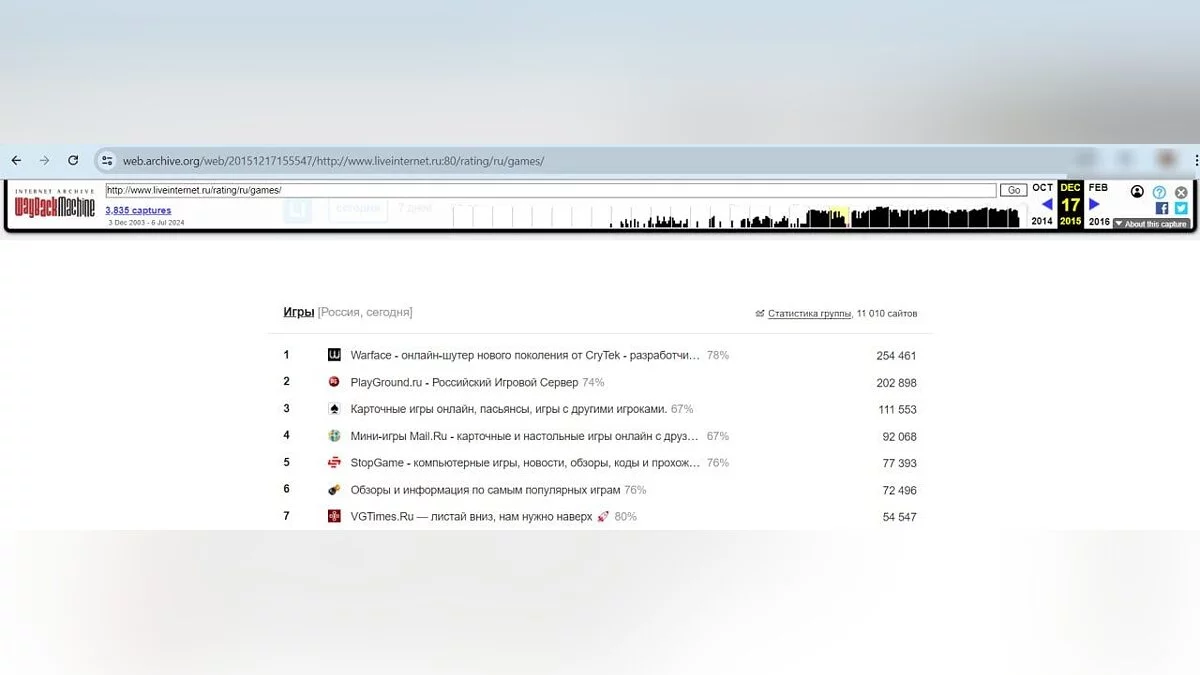 Сайт участвовал в рейтинге LiveInternet до 2022 года в категории «Игры». В 2015-2018 годах занимал 7 место.