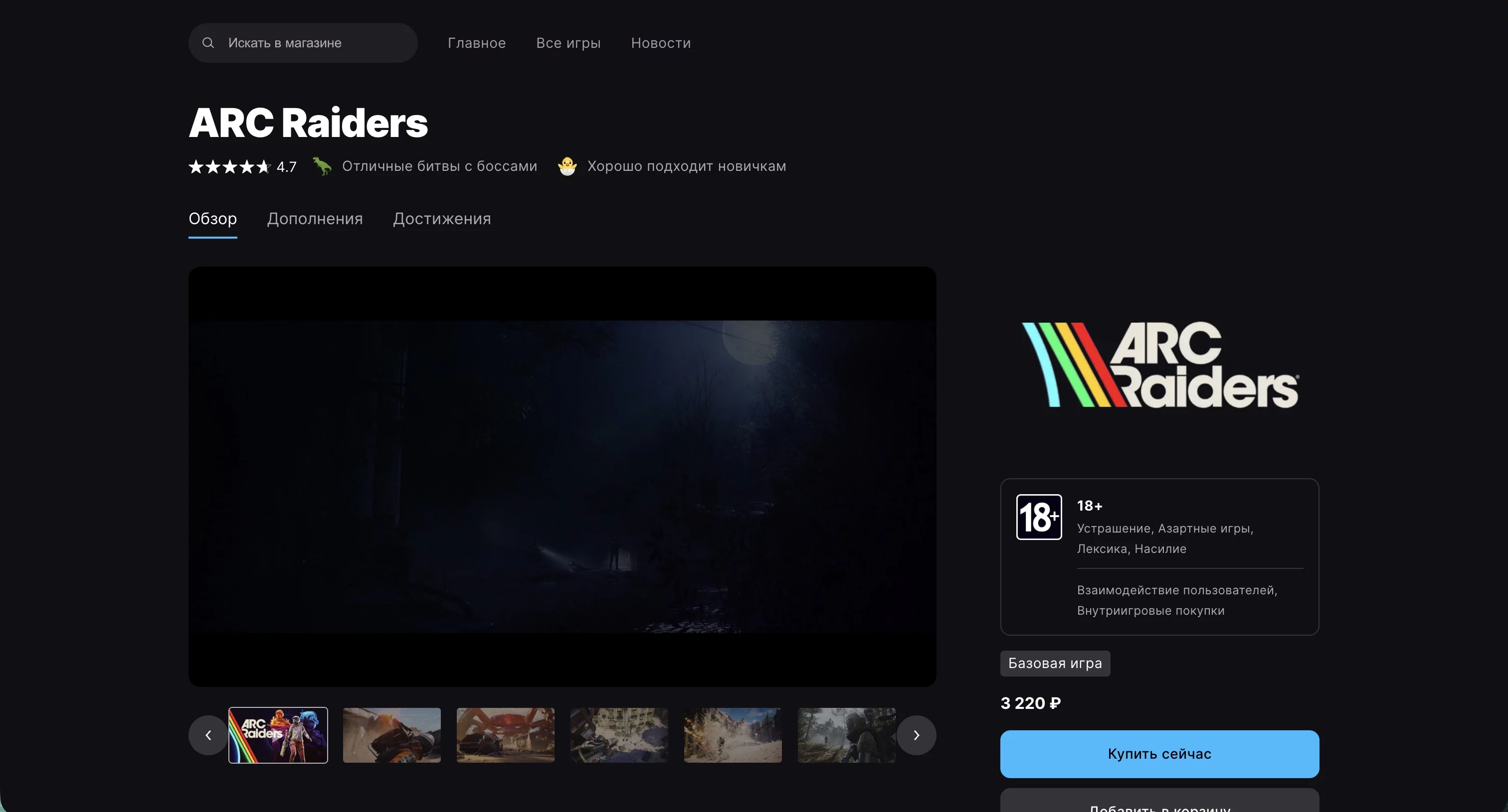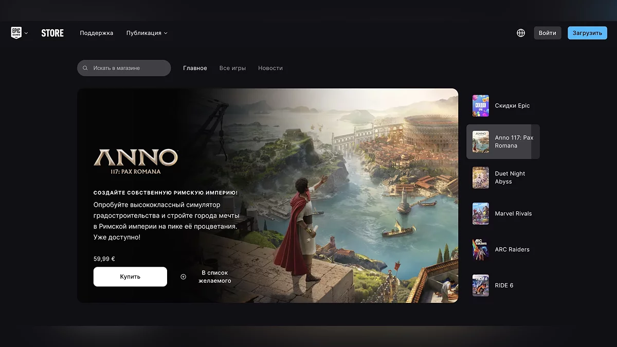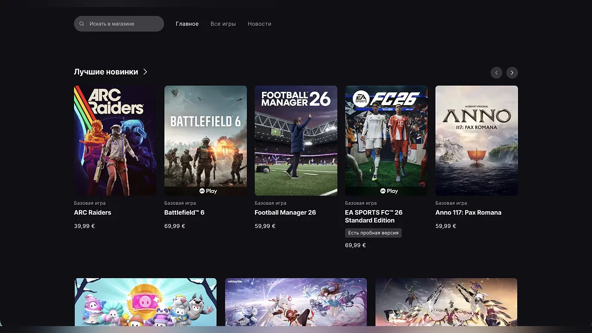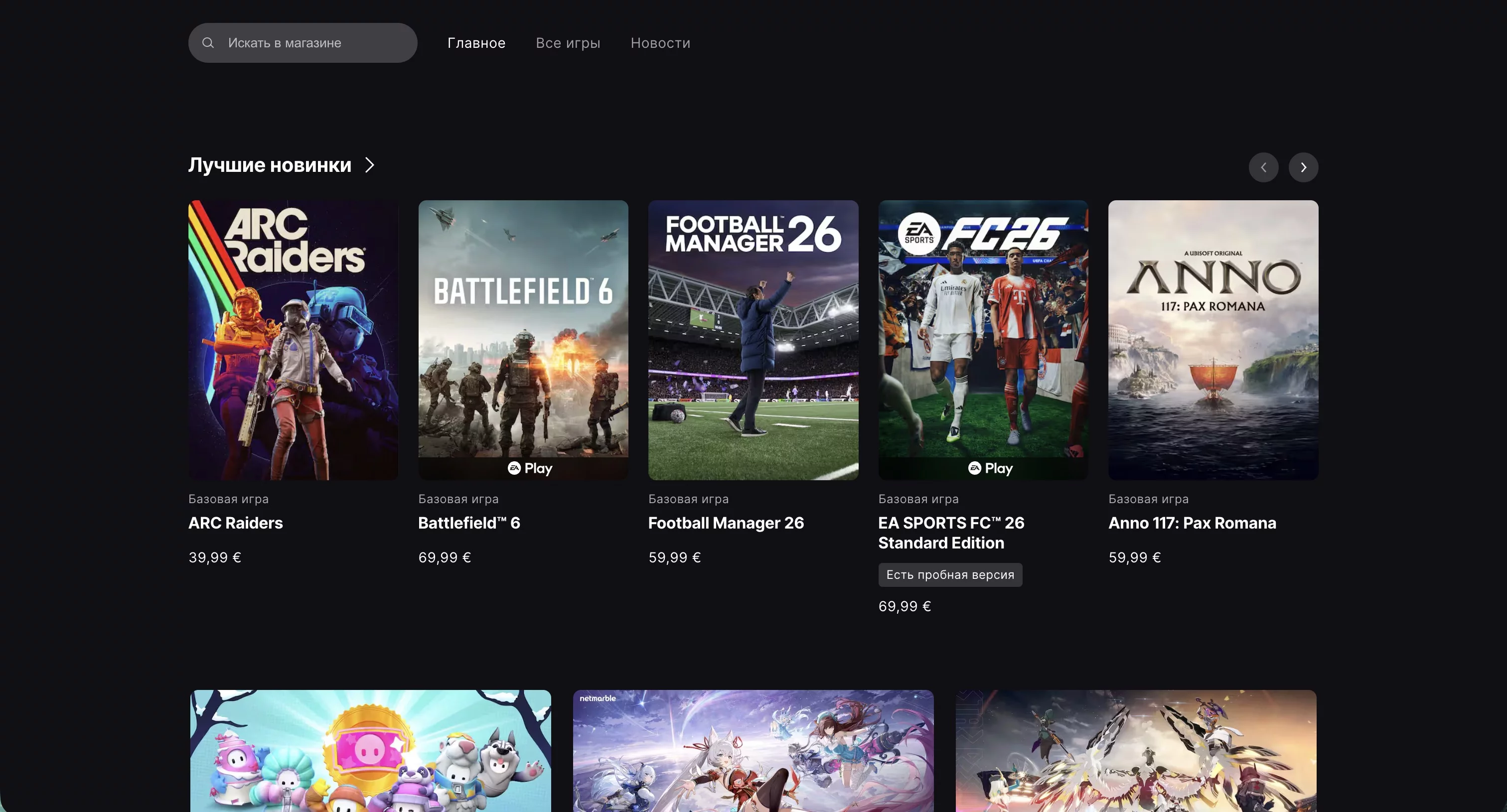 Сам каталог структурирован довольно просто: легко перемещаться между крупными ААА-играми, независимыми проектами и бесплатными предложениями. Дизайн магазина современный и не перегруженный, поэтому вся навигация остаётся интуитивной.