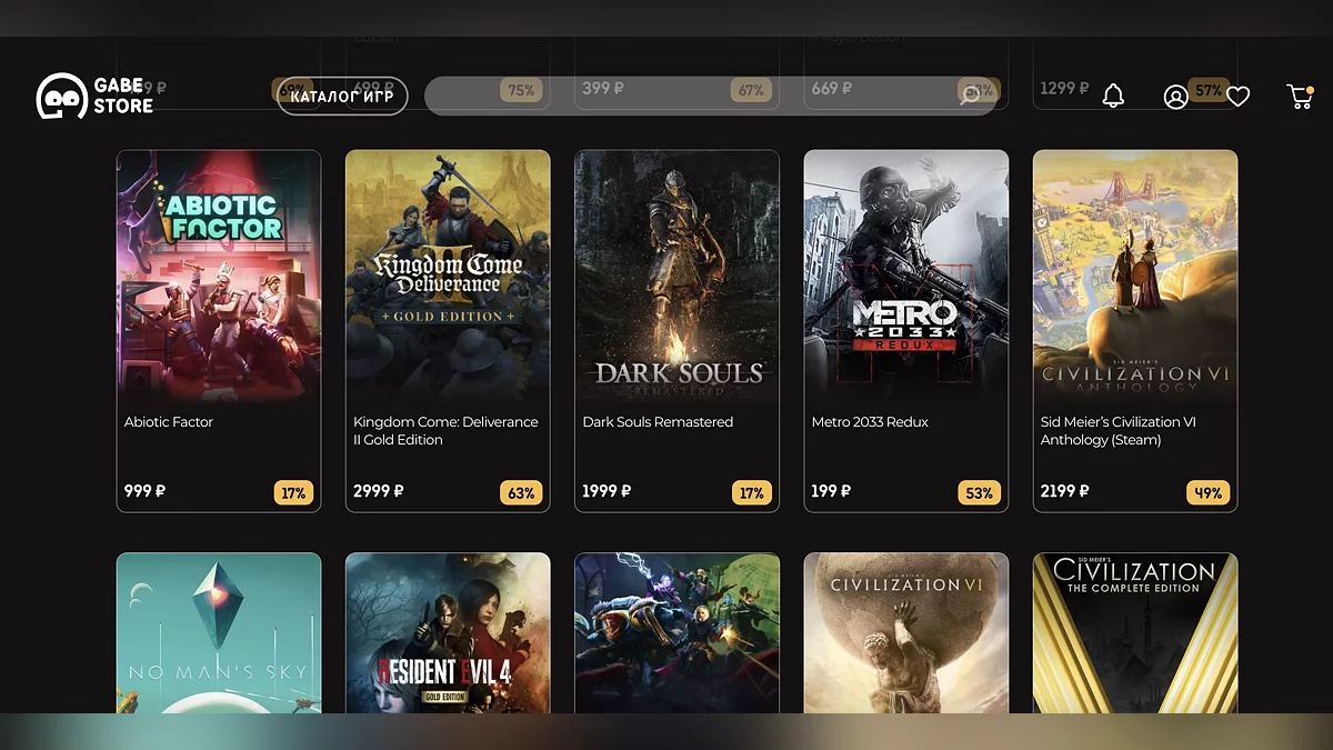 В среднем цены на новые проекты немного ниже, чем на официальных площадках, обычно на 200-400 рублей. Главное преимущество Gabestore в том, что здесь можно официально приобрести любую игру, хотя активация часто проходит через другой регион. Отдельный каталог со скидками позволяет отслеживать распродажи старых игр и акции от издателей. Удобно, что список можно сортировать по размеру скидки, хотя даже со снижением цен они нередко остаются высокими.