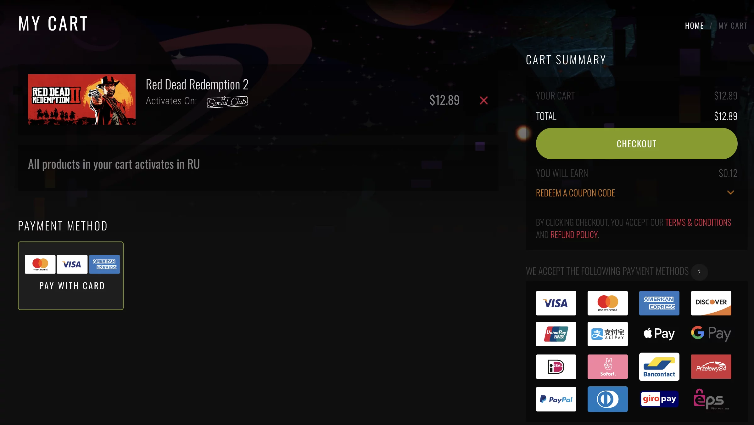 Игры добавляются в корзину, после чего остаётся выбрать способ оплаты и подтвердить заказ. Перед оплатой система ещё раз показывает, доступна ли активация в регионе пользователя.