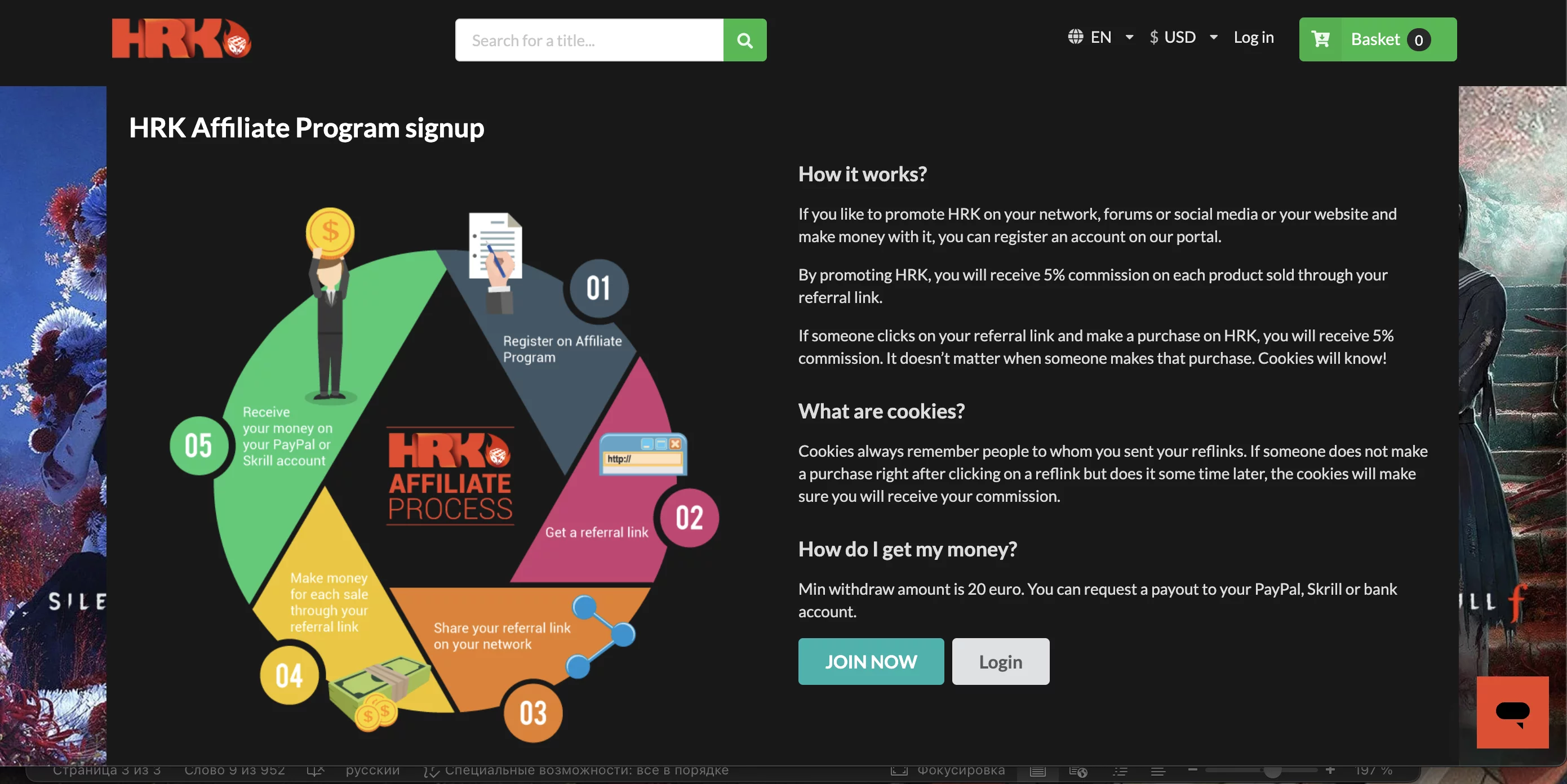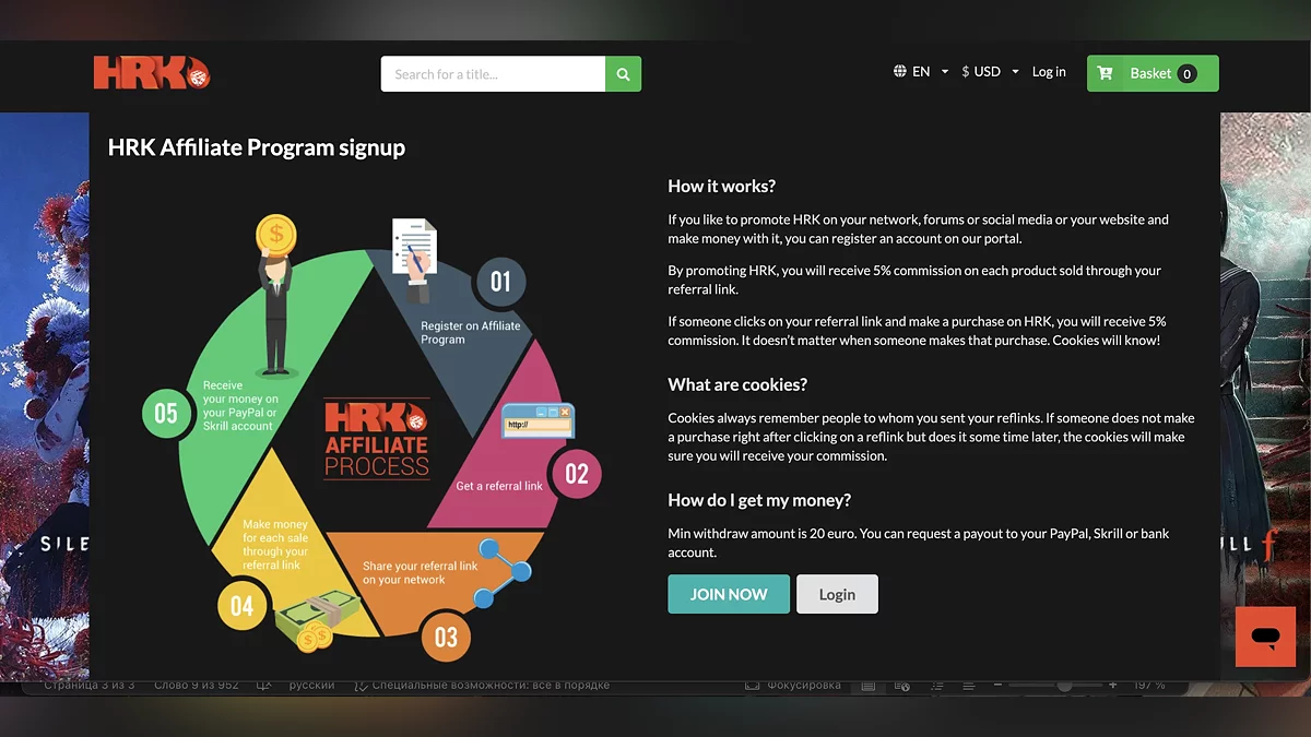 HRK Game предлагает покупателям несколько интересных дополнительных функций. Одна из них — реферальная программа: вы размещаете специальную ссылку на игру у себя в соцсетях, и за каждую покупку по этой ссылке получаете небольшое вознаграждение. Заработанные деньги можно вывести на свой платёжный счёт.
