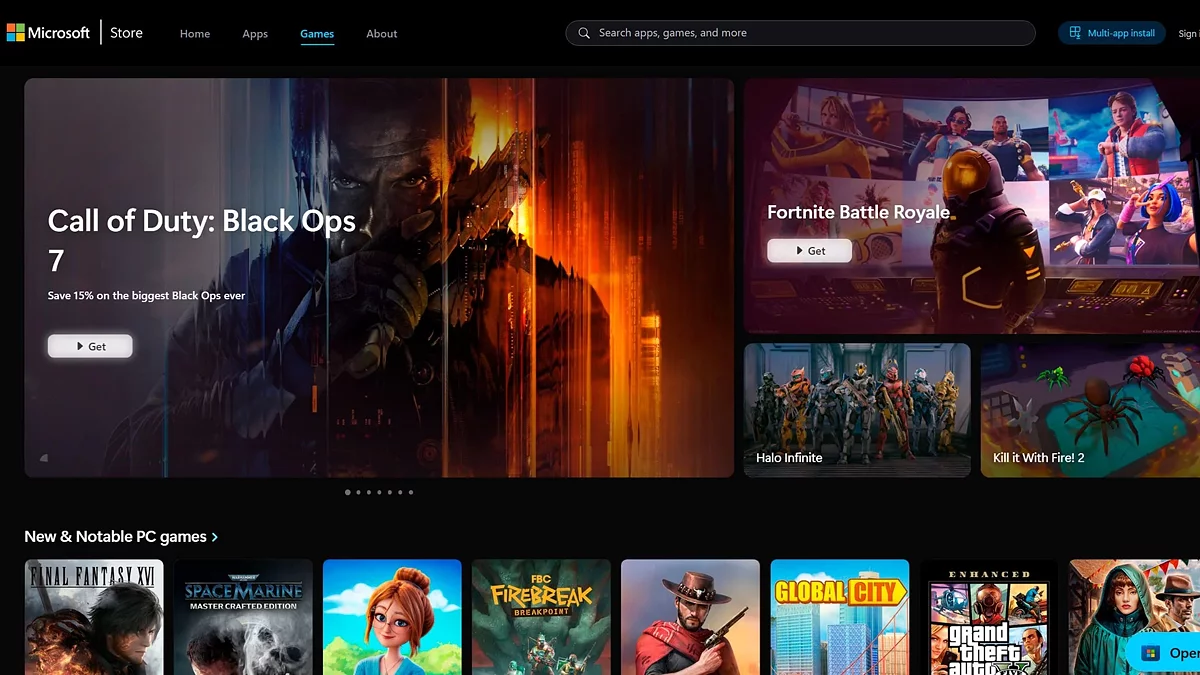 Ассортимент Microsoft Store ориентирован на крупные релизы и проекты экосистемы Xbox. Все игры внутренних студий появляются здесь в день выхода: Forza, Halo, Gears of War, Microsoft Flight Simulator, линейка Bethesda и каталог Activision Blizzard. Это один из самых полных наборов эксклюзивов Microsoft в цифровом формате. Сторонние издатели представлены неравномерно: каталог Ubisoft доступен, но требует запуска Ubisoft Connect; проекты EA — через EA App. Инди-игры представлены выборочно и в меньшем объёме, чем в Steam.