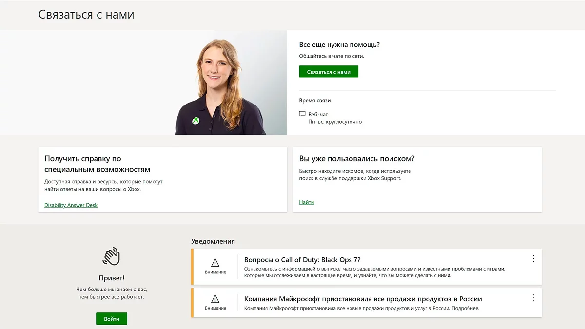 В экосистеме Microsoft Store преобладает корпоративная модель обслуживания. Прямого чата с оператором или мгновенной поддержки, как у классических ритейлеров цифровых ключей, здесь нет. Первым на контакт выходит виртуальный помощник, за ним — база знаний и автоматические рекомендации. До живого сотрудника удаётся добраться только после нескольких уточняющих шагов, и чаще всего это будет англоязычный специалист, работающий через переводчик. Для российского пользователя это не столько критично, сколько просто медленно и не гибко.