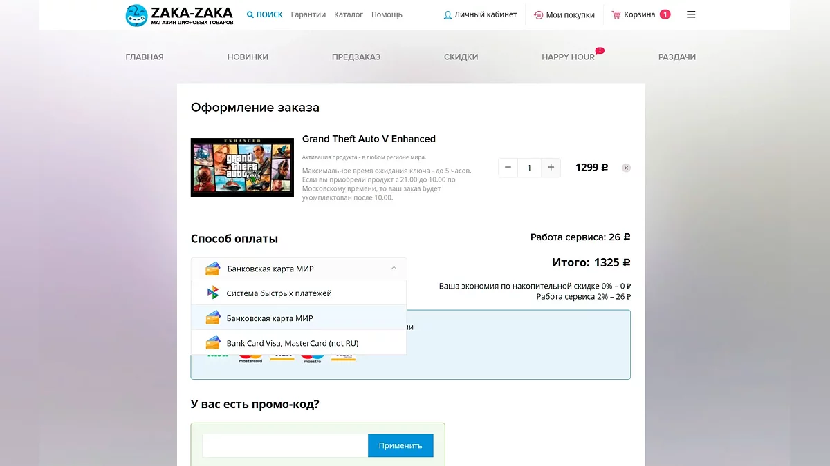 Для российских пользователей доступны переводы через СБП и оплата картами «Мир», хотя могут возникать задержки из-за дополнительных банковских проверок. Жители других стран СНГ полагаются на Visa и Mastercard. Криптовалюты магазин принципиально не принимает.