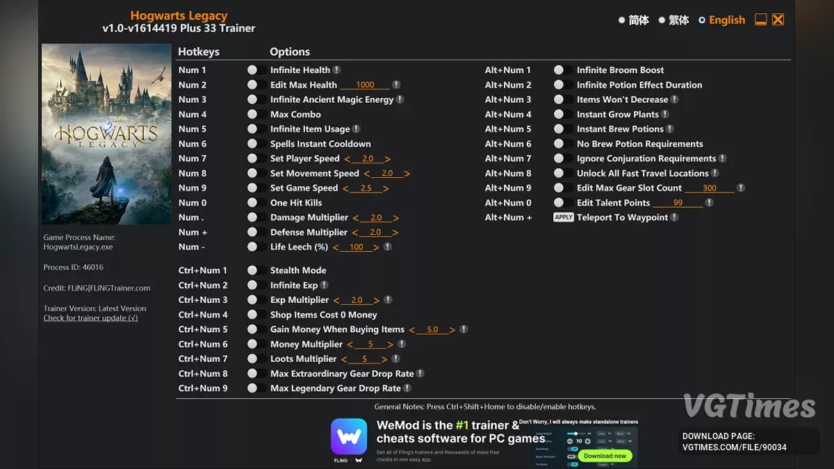 Hogwarts Legacy — Трейнер (+33) [1.0 - 1614419]