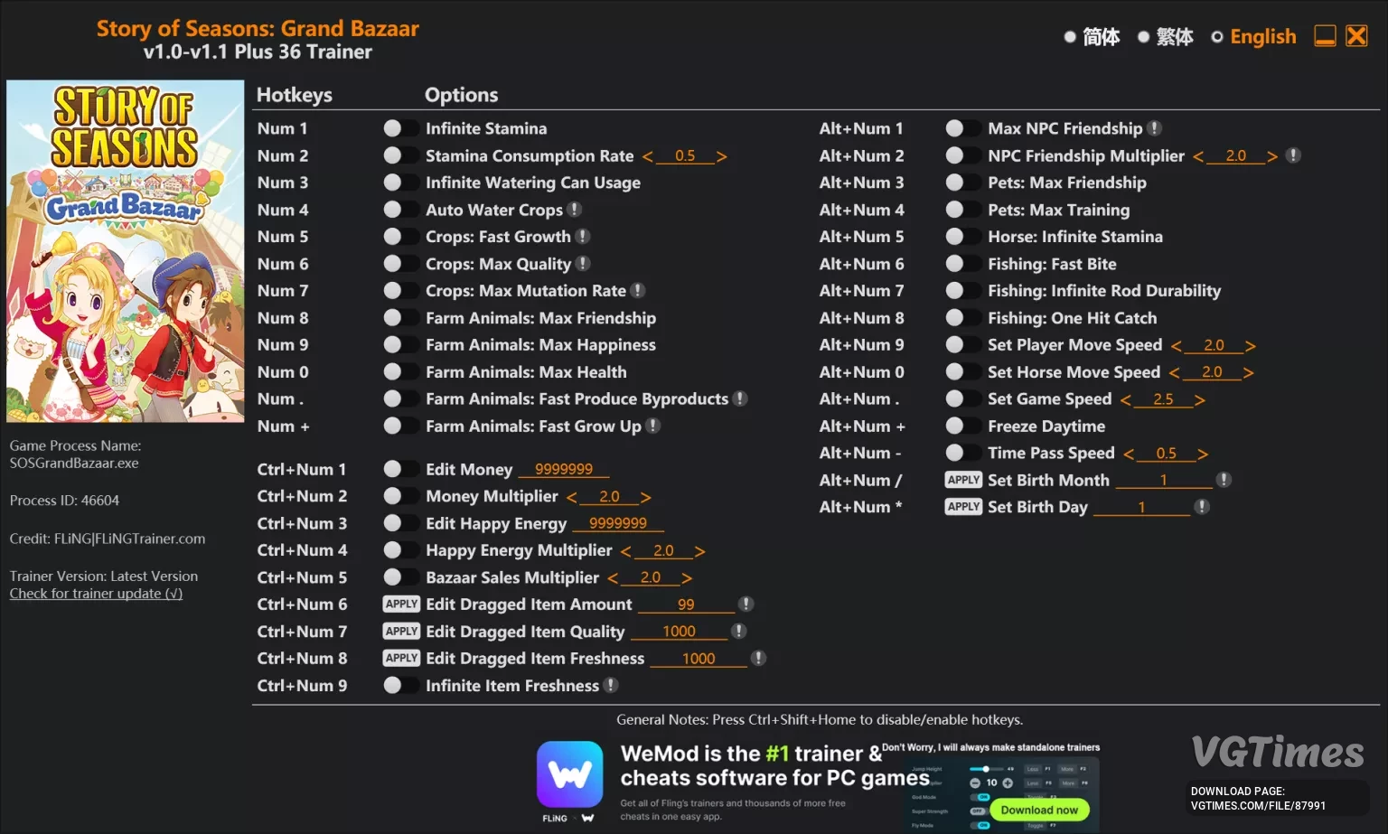Story of Seasons: Grand Bazaar — Трейнер (+36) [1.0 - 1.1]