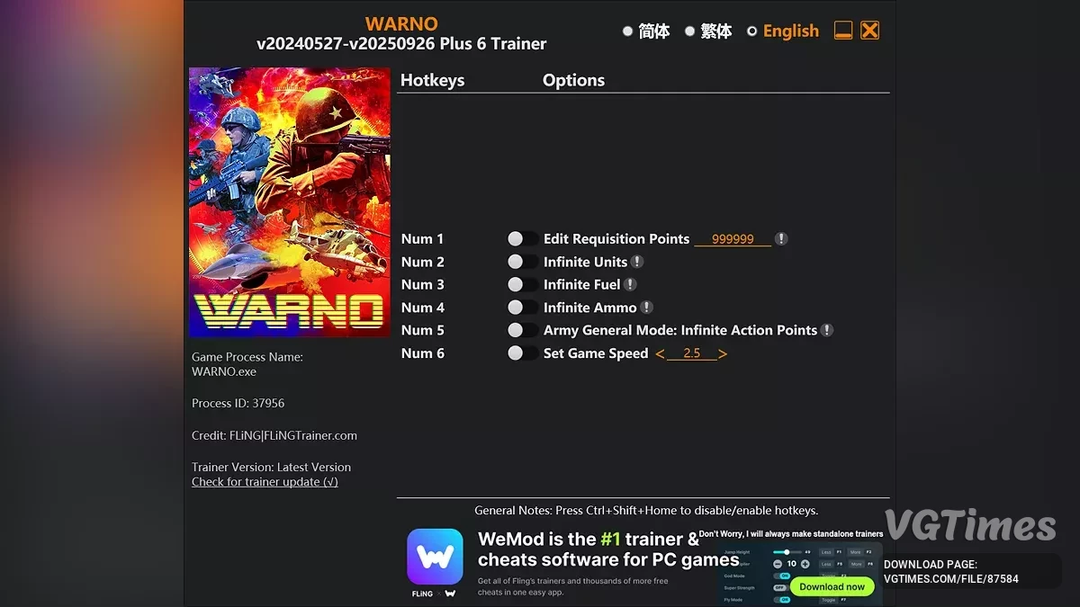 Функции и команды: Num 1 — Редактировать очки реквизиции. Num 2 — Бесконечные юниты. Num 3 — Бесконечное топливо. Num 4 — Бесконечные боеприпасы. Num 5 — Режим генерала армии: бесконечные очки действий. Num 6 — Установить скор ...