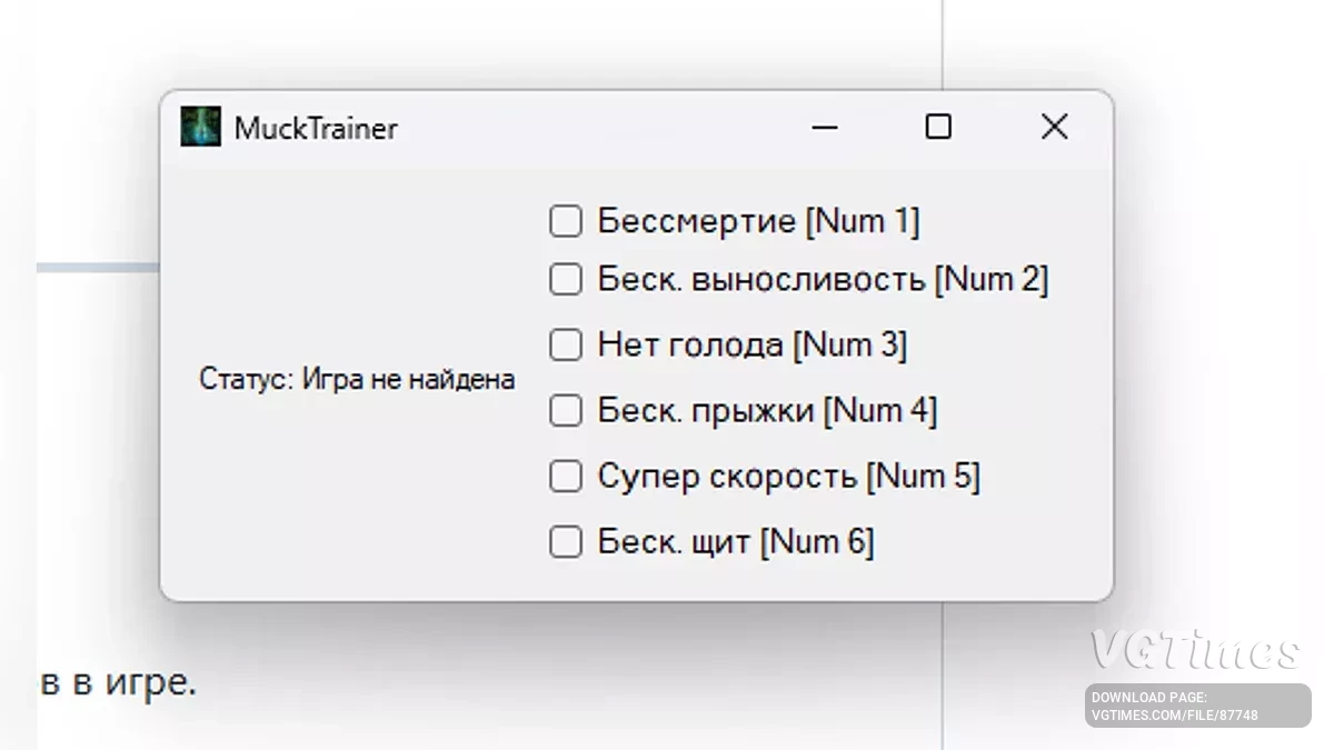 Функции и команды: Num 0 — Бесконечное здоровье. Num 1 — Бесконечная поддержка жизни. Num 2 — Игнорировать воздействия окружающей среды. Num 3 — Бесконечный бег. Num 4 — Бесконечный ранец. Num 5 — Бесконечная энергия мультиинс ...