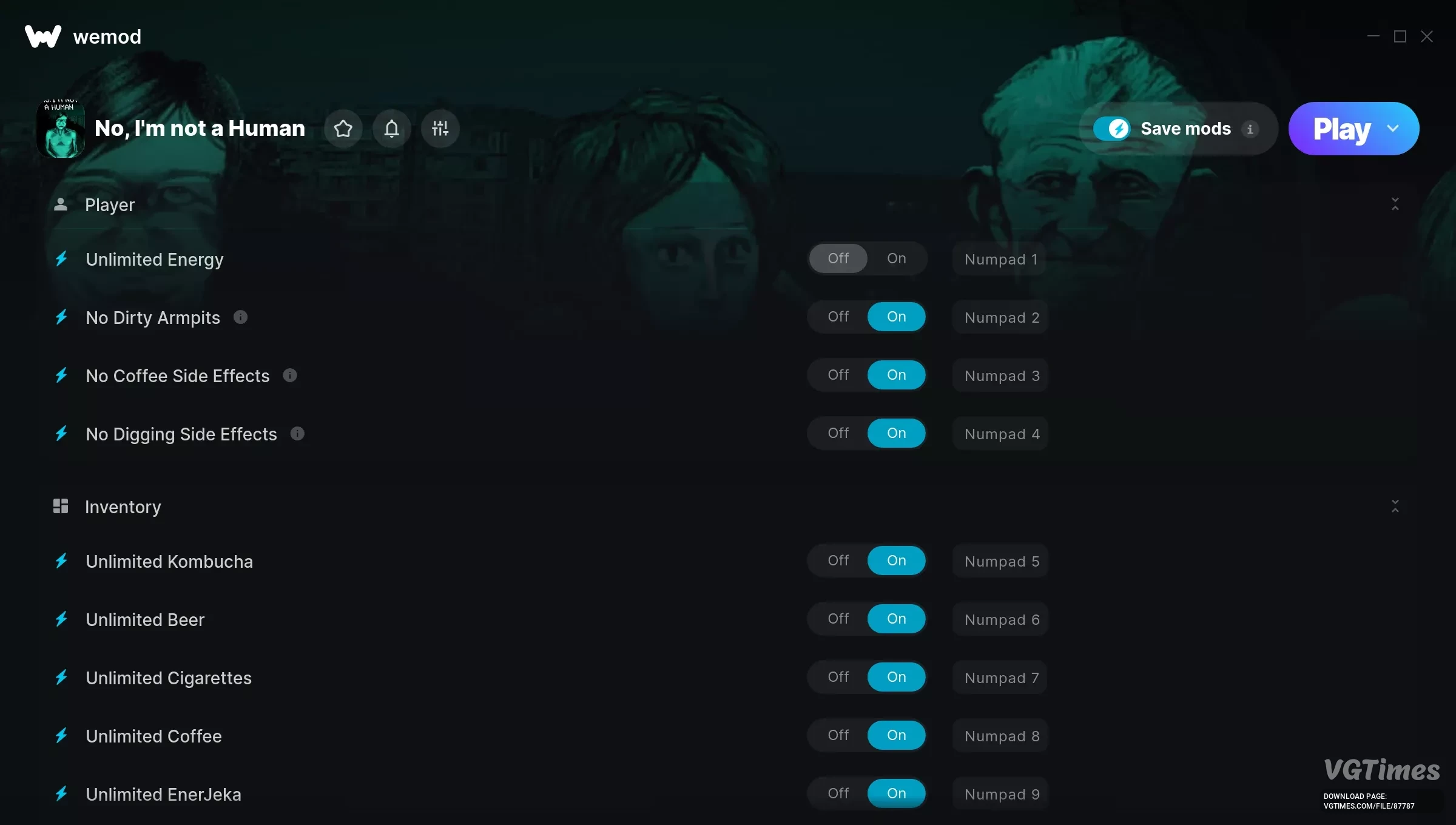 Функции и команды: Unlimited Energy – Неограниченная энергия. No Dirty Armpits – Нет грязных подмышек. No Coffee Side Effects – Нет побочных эффектов от кофе. No Digging Side Effects – Нет побочных эффектов от копания. Unlimited Kombucha – ...