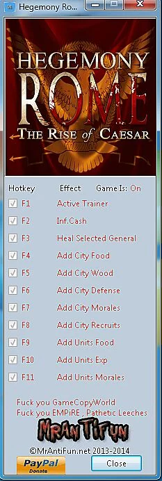 Hegemony Rome: The Rise of Caesar — Трейнер / Trainer (+10) [30687: 64 Bit] [MrAntiFun]