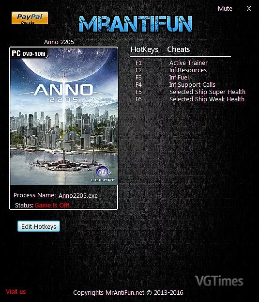 Автор : MrAntiFun Издание : Steam Версия : Latest Язык : Eng Функций : 5 Дата выпуска : 17.11.2016 Горячие клавиши и возможности трейнера: - F1 — Активировать Трейнер (Active Trainer) - F2 — Беск. Ресурсы (Inf. Resourses) - ...