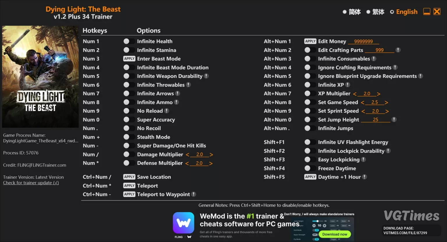 Dying Light: The Beast — Трейнер (+34) [1.2]