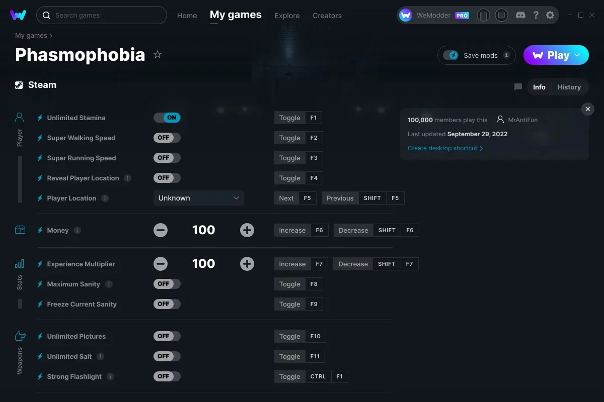 Phasmophobia — Трейнер (+21) от 29.09.2022 [WeMod]