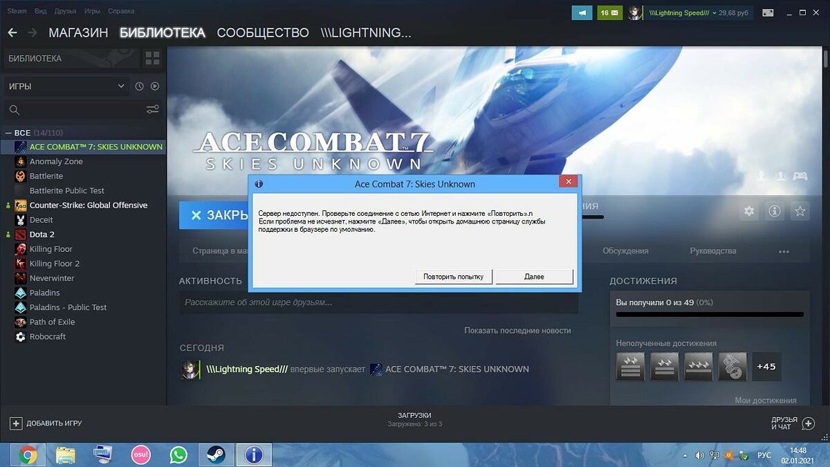 Проблема запуска ACE COMBAT 7: Skies Unknown