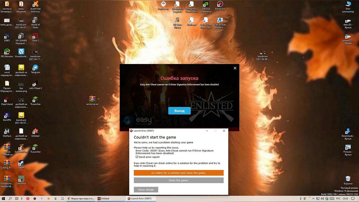Здравствуйте! Установил игру , и при её запуске столкнулся с такой вот ошибкой! Подскажите , что делать? попробовал несколько способов , а точнее: перезагрузить ПК , переустановка драйверов , отключение принудительной подписи драйвера , не помогло. Заранее спасибо!