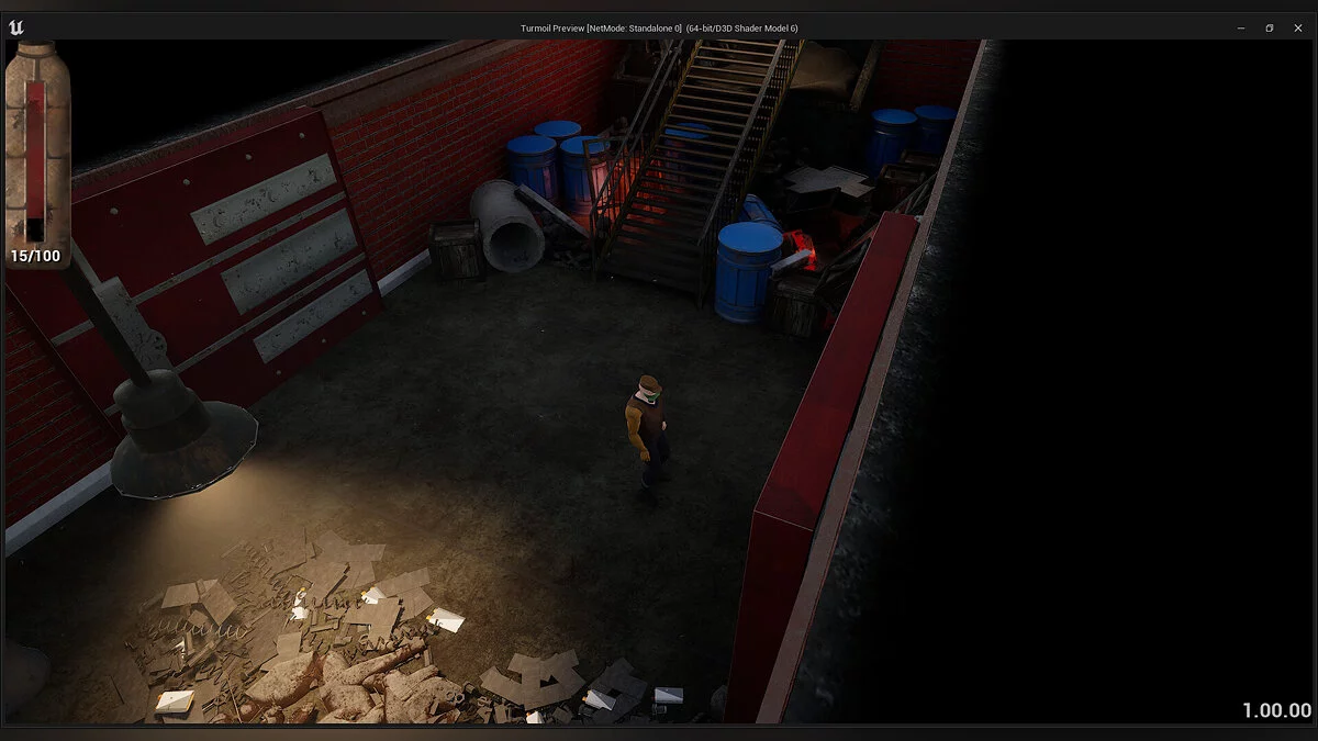Turmoil — изометрический рогалик с видом сверху, вдохновленный эстетикой дизельпанка, где нужно исследовать извилистые коридоры фабрики Geargrave Automations, полные агрессивных роботов-рабочих, работающих на нефти. Игра состоит из трёх уровней. Страница в Steam.