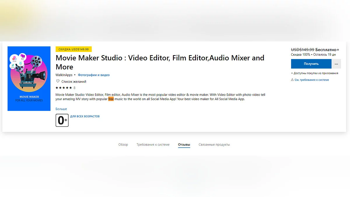 В описании указано, что бесплатная раздача продлится еще 19 дней, а ранее эта программа стоила почти $150 (около 10,7 тыс рублей).