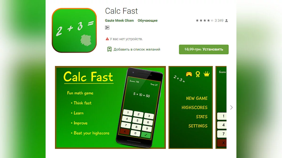 - Calc Fast — математическая игра, в которой нужно быстро решать уравнения (загрузить бесплатно);