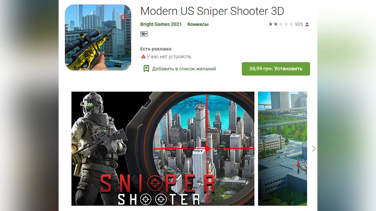 - Modern US Sniper Shooter 3D — мобильный симулятор снайпера от первого лица (загрузить бесплатно);