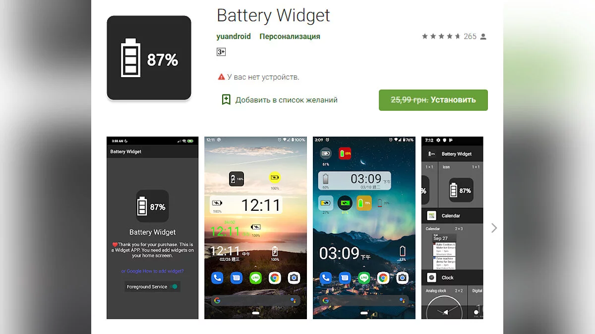 - Battery Widget — альтернативный виджет состояния батареи (загрузить бесплатно);