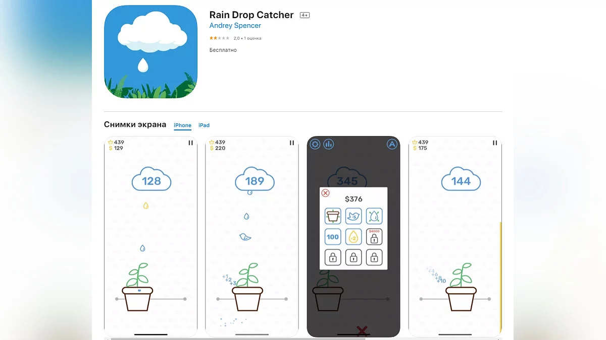 - Rain Drop Catcher — игра, в которой нужно ловить капли дождя наподобие «Ну, погоди!» (загрузить бесплатно).