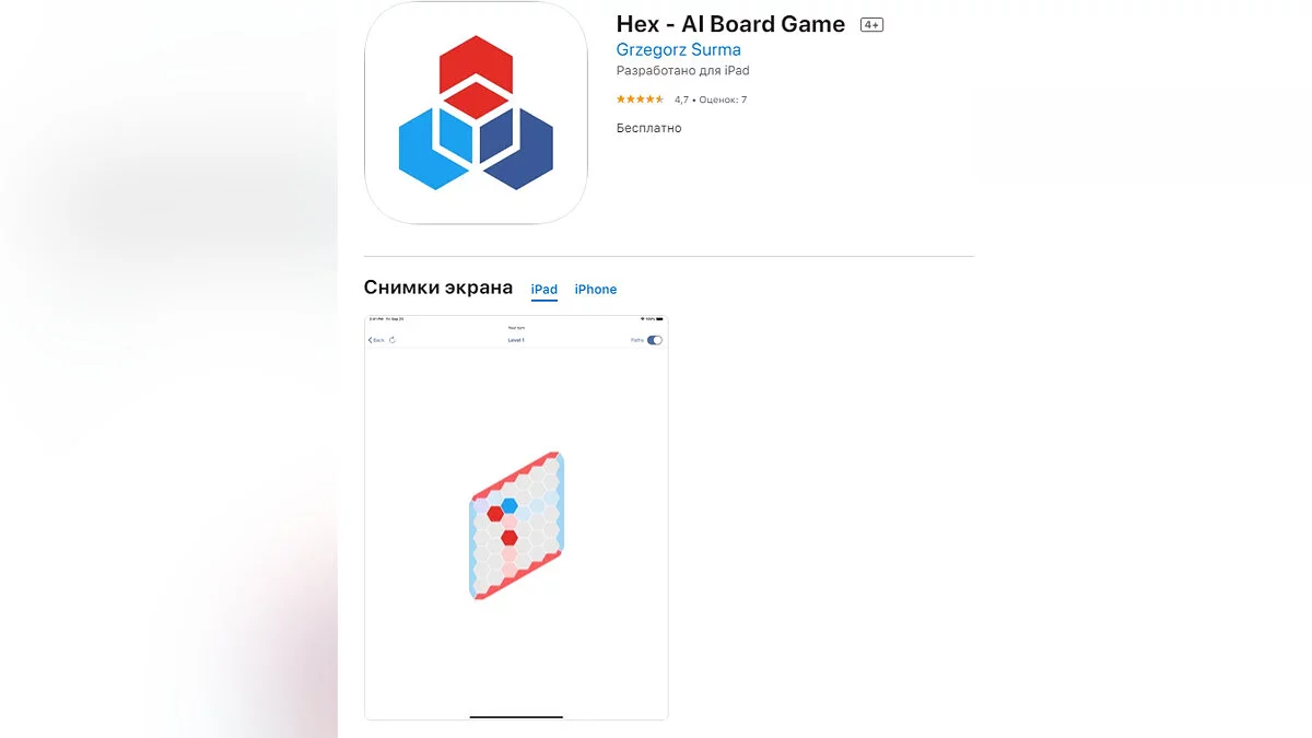 - Hex AI Board Game — цифровая версия математической игры гекс (загрузить бесплатно);