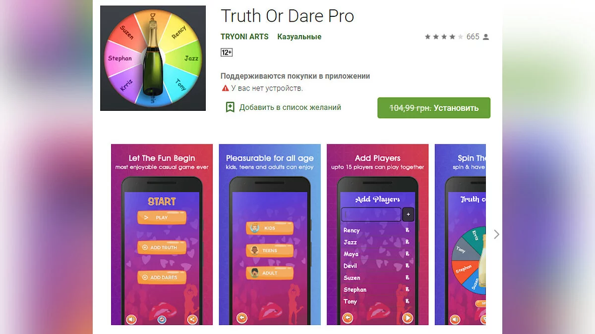 - Truth Or Dare Pro — виртуальная версия игры в бутылочку. Отлично подходит для домашних вечеринок (загрузить бесплатно);