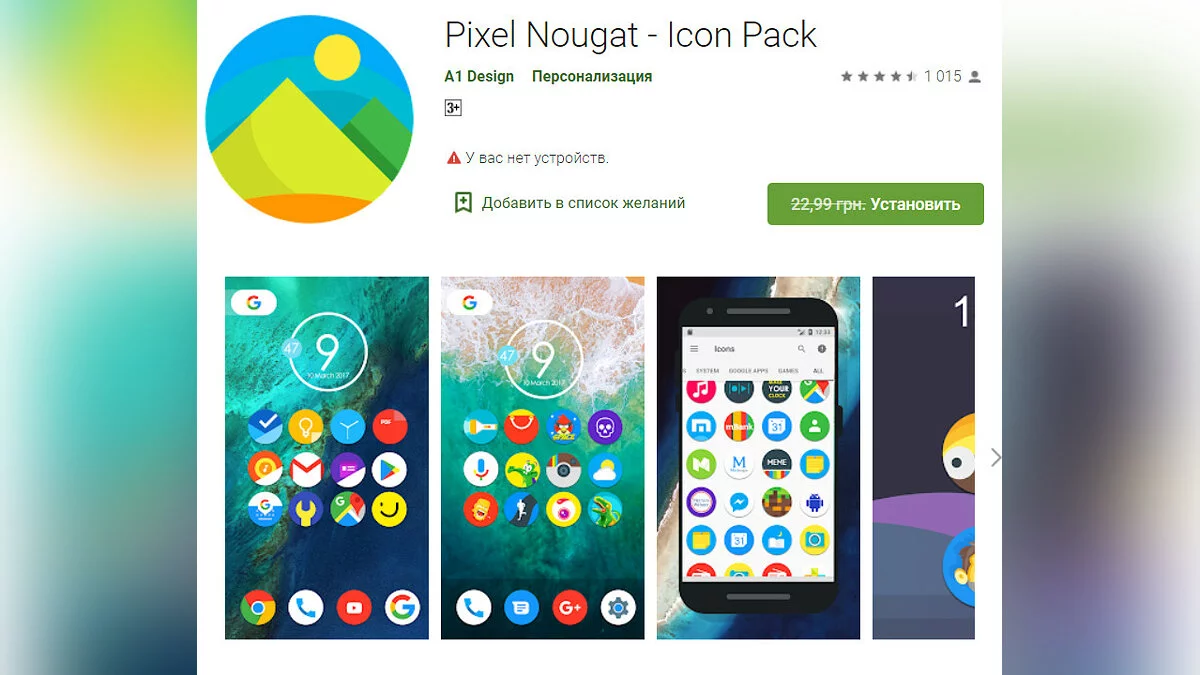 - Pixel Nougat — Icon Pack — набор альтернативных круглых иконок (загрузить бесплатно);