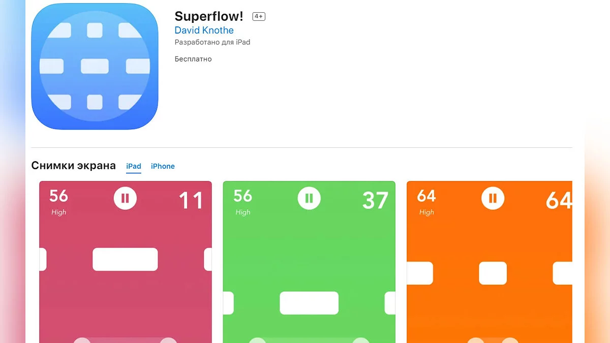 - Superflow — минималистичная игра, в которой нужно управлять двумя точками и избегать препятствий (загрузить бесплатно).