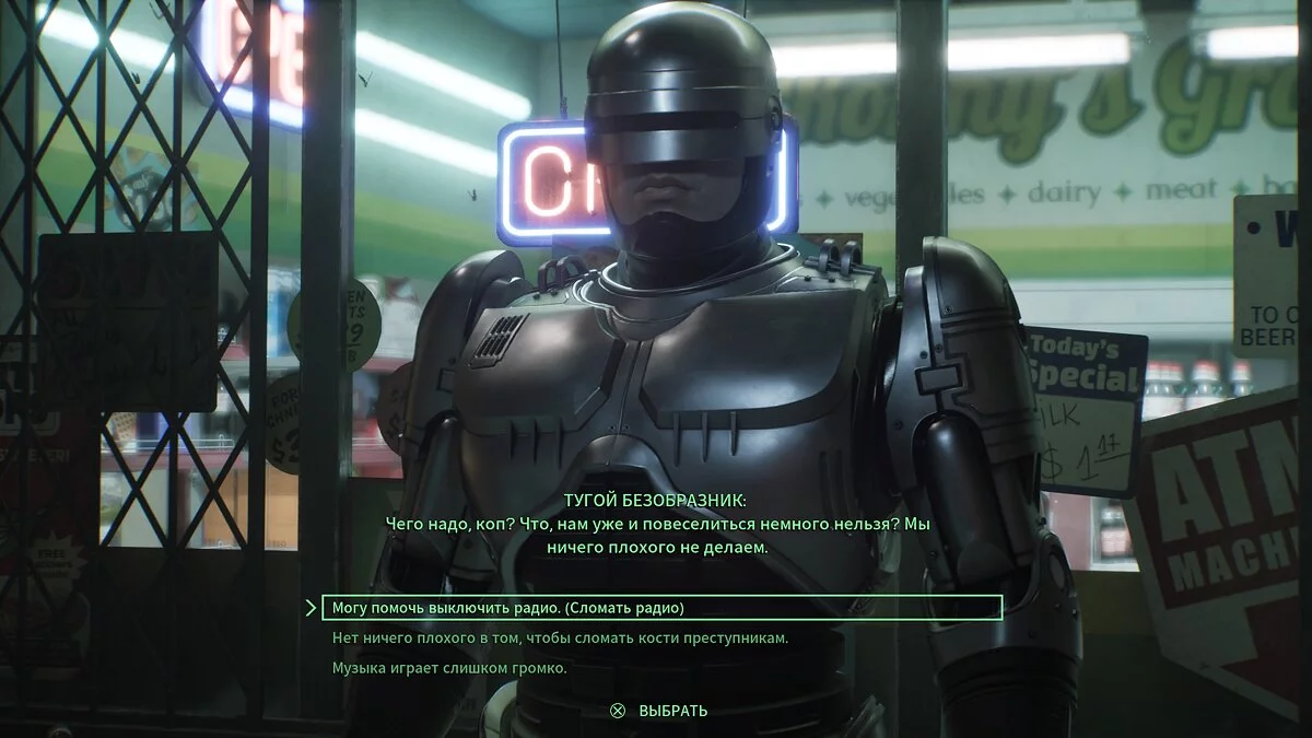 И раз уж мы заговорили про приключения Адама Дженсена, стоит немного остановиться на вариативности в RoboCop: Rogue City. В геймплейной составляющей её нет, однако есть полноценная диалоговая система, которая якобы учитывает ваши сильные и слабые стороны.