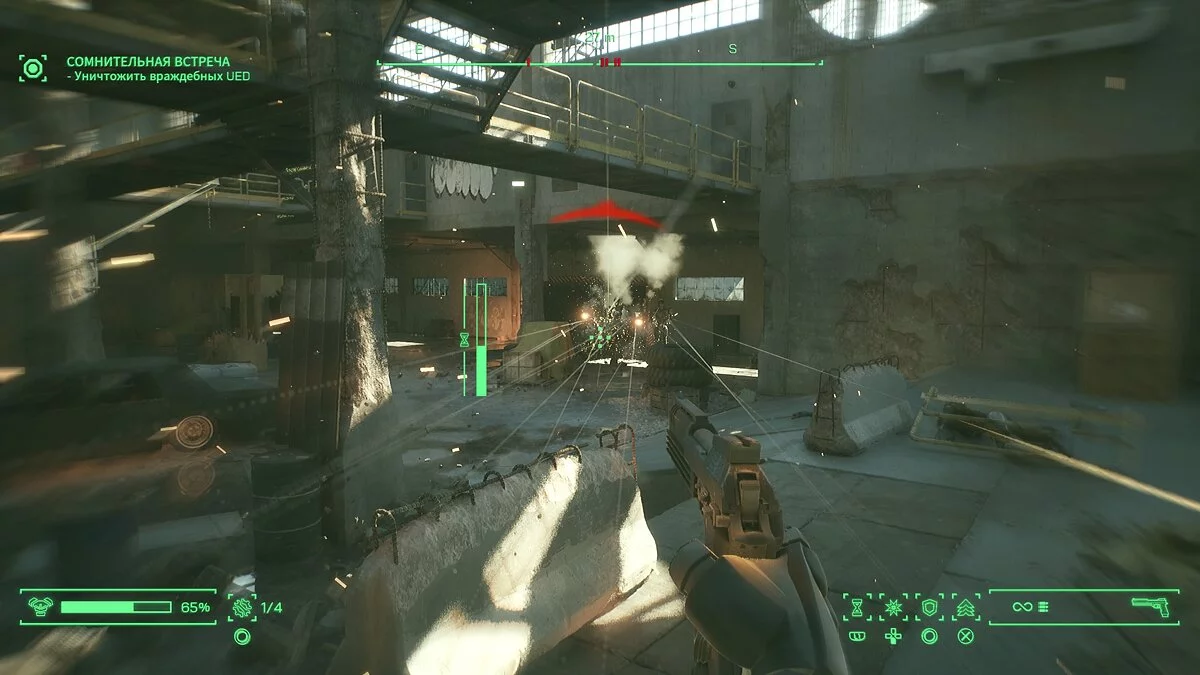 Есть и ещё один ощутимый недостаток — техническое исполнение. Игра вышла второго ноября, но до сих пор так и не получила ни одного патча, а они ей очень нужны. На консолях новинка выглядит просто ужасно. Режим «Качество» для PS5 буквально режет глаза, а «Производительность» убирает львиную долю местной детализации. То и дело отдельные предметы, части тел или стволы проваливаются в текстуры, а неудачно брошенный стул в небольшой комнате из-за проблем с физикой способен нанести ущерб похлеще пулемета. Разрушаемые части окружения исчезают на глазах, а детализация лиц прорисовывается прямо во время диалогов.