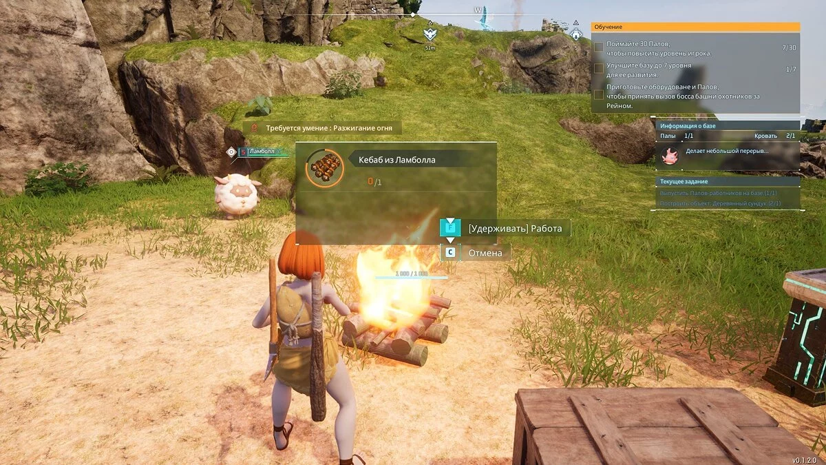 С получением нового уровня открываются и новые возможности — прокачать одну из характеристик персонажа, открыть новые объекты, которые можно поставить на своей базе. Проблема в том, что прогрессия после 10 уровня серьезно сбавляет темп. Для следующего уровня не достаточно вырезать целую толпу палов. Приходится реально фармить опыт. А квестовой системы в игре как таковой нет, и весь опыт падает лишь за внутриигровые действия. Мы полчаса реального времени стояли у костра и жарили ягоды, чтобы дополучить недостающие очки опыта и открыть новые постройки. И нет, это не весело.