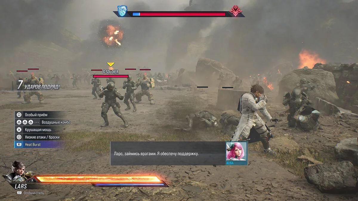 Однако без нововведений не обошлось. Чуть ниже шкалы здоровья появилась ещё одна, которая отвечает за совершенно новую механику — Heat Burst. Её можно использовать лишь раз за раунд, и похожа она на X-Ray из последних Mortal Kombat, но с некоторыми изменениями. Вы не просто делаете один красивый приём, а кратно усиливаете бойца, позволяя ему некоторое время совершать сразу несколько сокрушительных комбо или связку особых атак, называемых Heat Smash. Блокировать такое можно, но если поймаете противника в воздухе, увидите череду анимаций, где персонаж буквально втопчет соперника в арену. Естественно, у каждого из героев свои удары и наблюдать за этим — сплошной восторг.