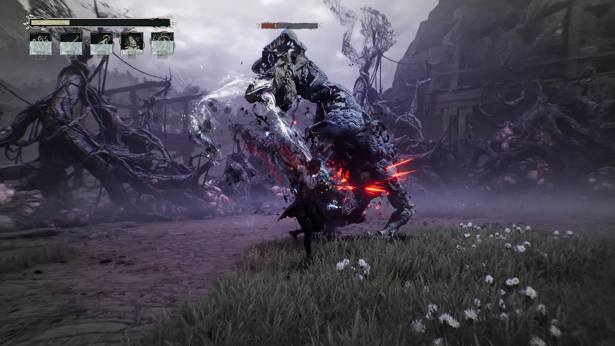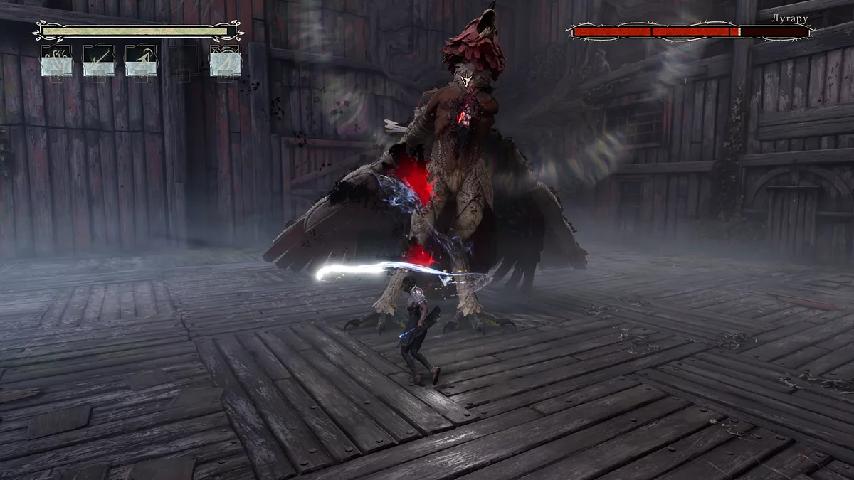Игра предлагает несколько сражений с боссами, заметно отличающихся от стандартных боевых арен. Например, противостояние с аллигатором требует точных уворотов от атак и своевременного использования колокольчика для временного оглушения противника. Бой с Лугару выполнен в лучших традициях FromSoftware — с необходимостью выверенных уклонений и реакций на неожиданные атаки. Хотя поведение боссов строится на предсказуемых паттернах, что снижает общую сложность, эти схватки вносят долгожданное разнообразие в довольно однообразный игровой процесс.