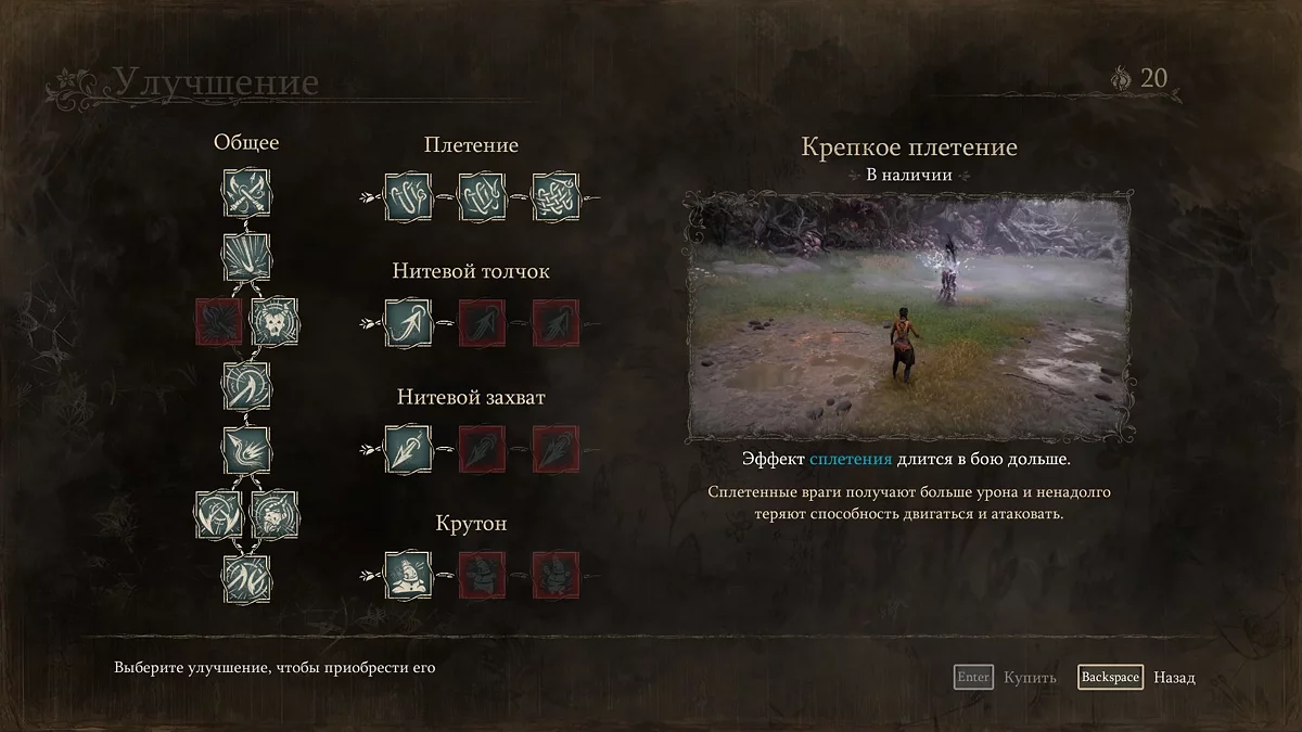 В игре есть простая система прокачки: можно улучшить способности и открыть новые навыки, например, двойной рывок или удар по площади. Для этого нужно собирать «хлопок», исследуя локации. К сожалению, навыков мало, и нет возможности экспериментировать с билдами. Из-за этого боевые сцены ощущаются стерильными и быстро надоедают своим однообразием.