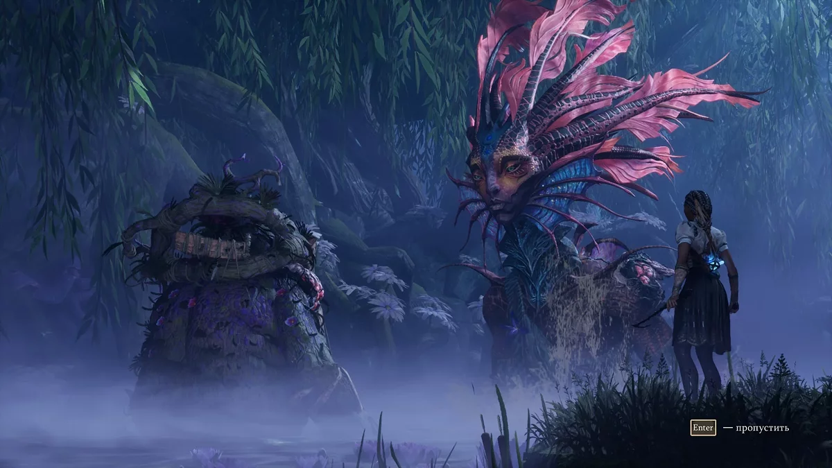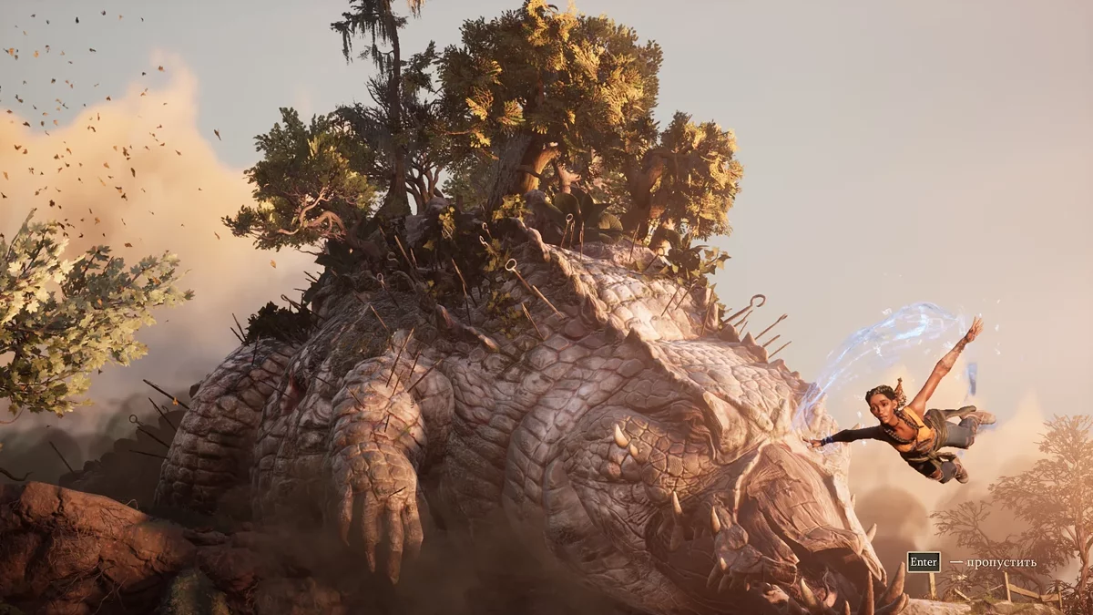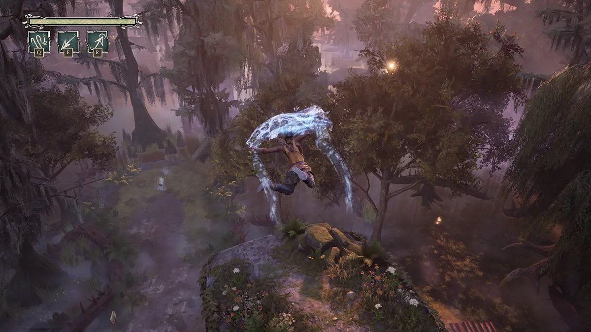 В арсенале Хейзел множество ткацких способностей, помогающих быстро перемещаться по обширным уровням. Разработчики выдают их постепенно, чтобы удивлять новыми возможностями. Сначала вы научитесь двойному прыжку и планированию, как в The Legend of Zelda: Breath of the Wild, затем бегу по стенам, как в Prince of Persia, потом сможете цепляться за особые точки и скользить по воздуху, как в Prototype, и так далее. При этом South of Midnight не перегружает игрока сложными платформенными испытаниями, не заставляет просчитывать каждый шаг.