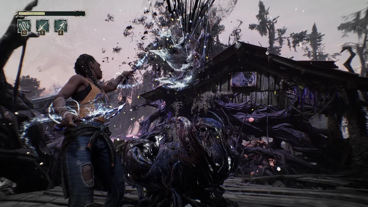 А вот боевые секции — слабое место South of Midnight. Сражения происходят на изолированных аренах, где волнами нападают Хэинты — демонические воплощения человеческой боли и печали, постепенно захватывающие родной город героини. Поначалу кажется, что врагов всего три типа, но их разнообразие растет по мере прохождения. Одни атакуют в ближнем бою, другие заражают местность порчей, запускают взрывоопасных мух или усиливают сородичей.