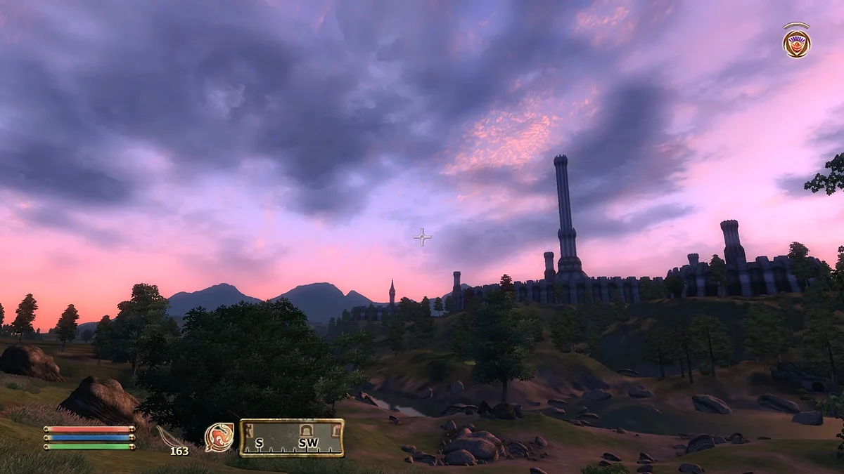 Но если перестать разглядывать окружение и сконцентрироваться на контентном наполнении, то первое, что сразу видишь — устаревший по современным меркам открытый мир. Каким бы красивым ни был Сиродил, он абсолютно пустой в плане наполнения и логики случайных событий. Bethesda в начале нулевых еще не умела заполнять пространство интересными встречами, что разочарует новичков, познакомившихся с серией во времена Skyrim. Противники зачастую случайно появляются неподалеку от игрока и преследуют его до тех пор, пока он их не убьет. Из-за этого в большинстве случаев нельзя нажать кнопку ожидания или лечь спать на открытой местности, так как игра будет постоянно напоминать вам, что поблизости есть враг.
